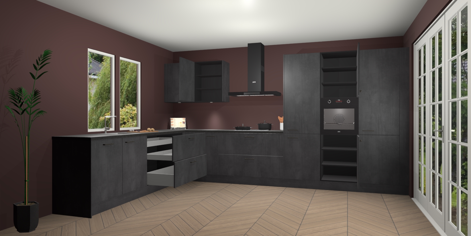 Kom dichtbij de perfecte keuken van uw dromen met de Beton Zwarte keuken Debrecen. Met een prachtige houtlook en eigentijds ontwerp, straalt deze keuken warmte en sfeer uit. Of u nu liefhebber bent van traditionele of moderne stijlen, er is genoeg ruimte om aan al uw behoeften te voldoen.