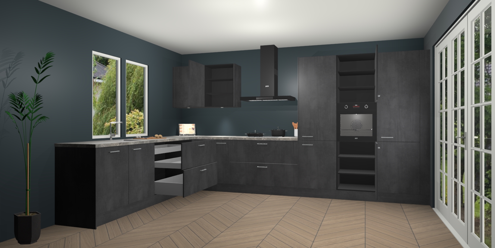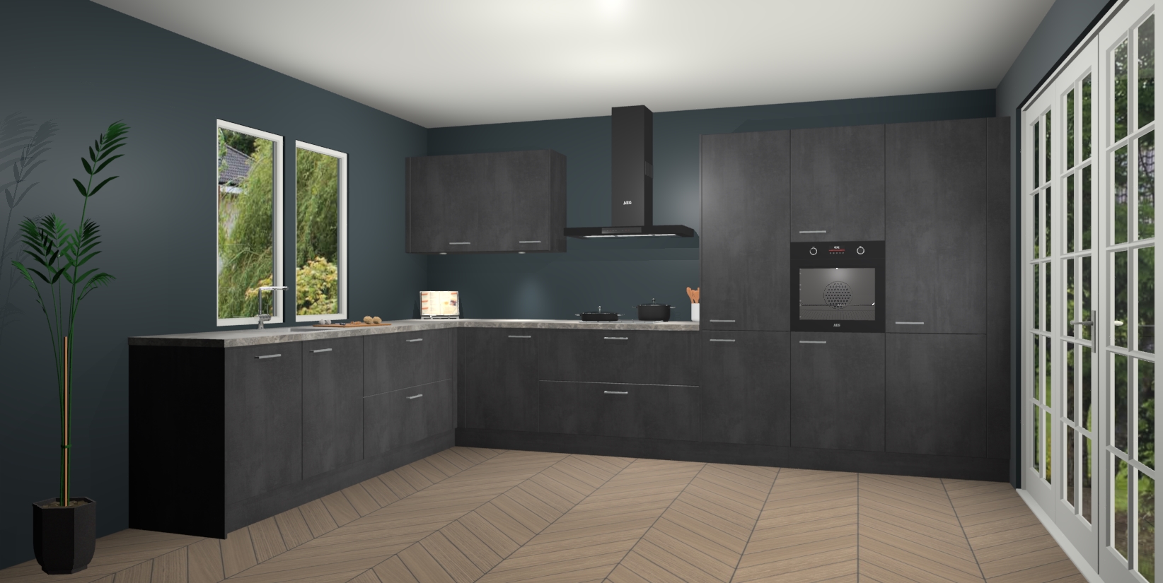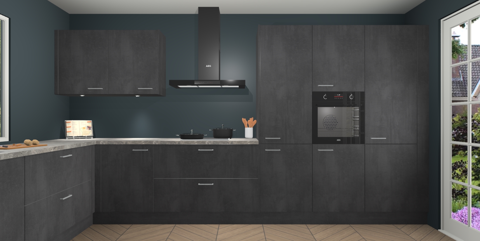 Heeft u nog apparatuur nodig? Geen probleem: de Beton Zwarte keuken Debrecen bevat vijf ingebouwde apparaten - een oven, inductiekookplaat, afzuigkap, vaatwasser en koelkast - die gemakkelijk kunnen worden bijgewerkt naar AEG na bestelling. En als dat nog niet genoeg is; onze kasten worden pre-geassembleerd geleverd en zijn verkrijgbaar tegen een vastgeroeste lage prijs! U hoeft nooit meer te zoeken naar goede kwaliteit en service want onze producten hebben echt Duitse kwaliteit.