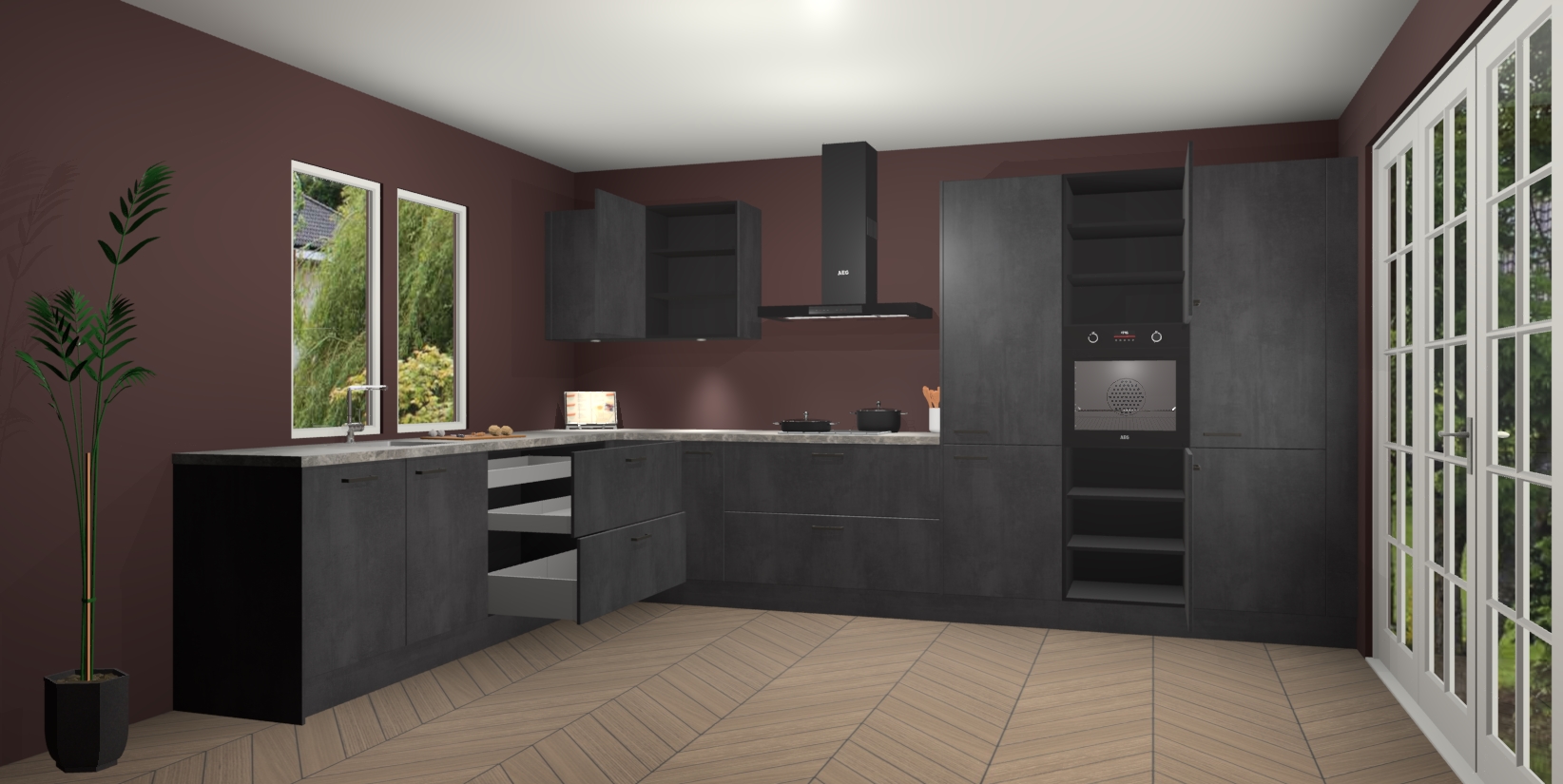 Kom dichtbij de perfecte keuken van uw dromen met de Beton Zwarte keuken Debrecen. Met een prachtige houtlook en eigentijds ontwerp, straalt deze keuken warmte en sfeer uit. Of u nu liefhebber bent van traditionele of moderne stijlen, er is genoeg ruimte om aan al uw behoeften te voldoen.