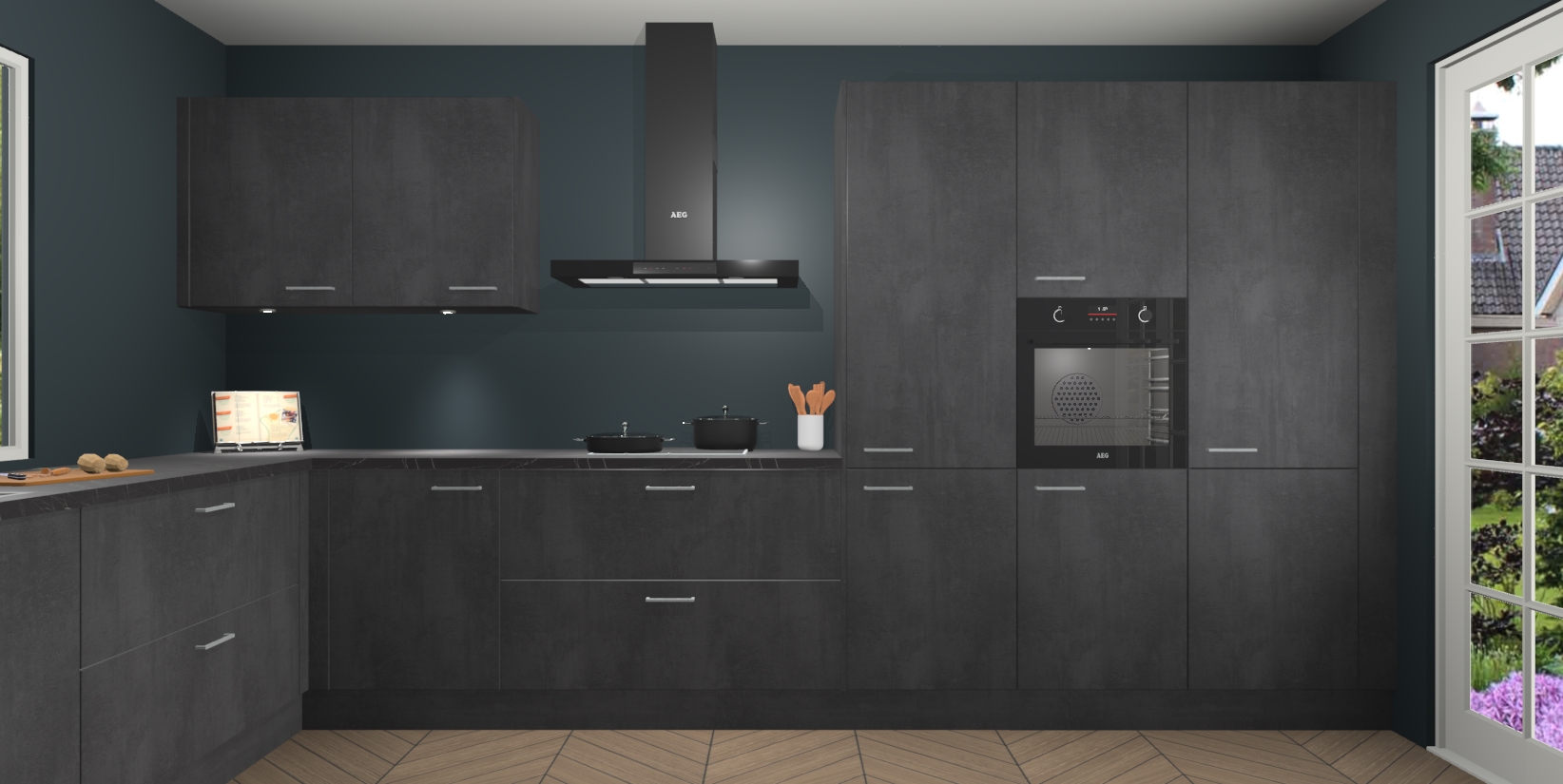 Heeft u nog apparatuur nodig? Geen probleem: de Beton Zwarte keuken Debrecen bevat vijf ingebouwde apparaten - een oven, inductiekookplaat, afzuigkap, vaatwasser en koelkast - die gemakkelijk kunnen worden bijgewerkt naar AEG na bestelling. En als dat nog niet genoeg is; onze kasten worden pre-geassembleerd geleverd en zijn verkrijgbaar tegen een vastgeroeste lage prijs! U hoeft nooit meer te zoeken naar goede kwaliteit en service want onze producten hebben echt Duitse kwaliteit.