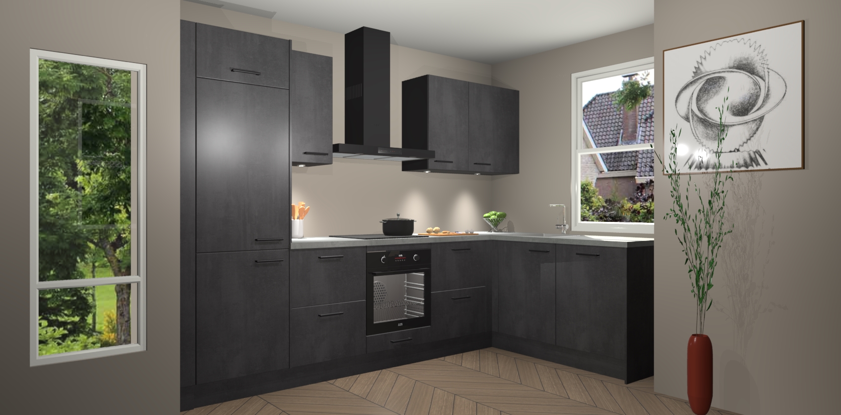 Bent u op zoek naar een moderne en tijdloze keuken die schoonheid in uw huis brengt? Zoek dan niet verder dan de Beton Zwarte keuken Geneve - de perfecte keuken voor al uw wensen. Deze hoekkeuken biedt de hoogste Duitse kwaliteit voor een vaste lage prijs en is zeker een blikvanger in uw huis!