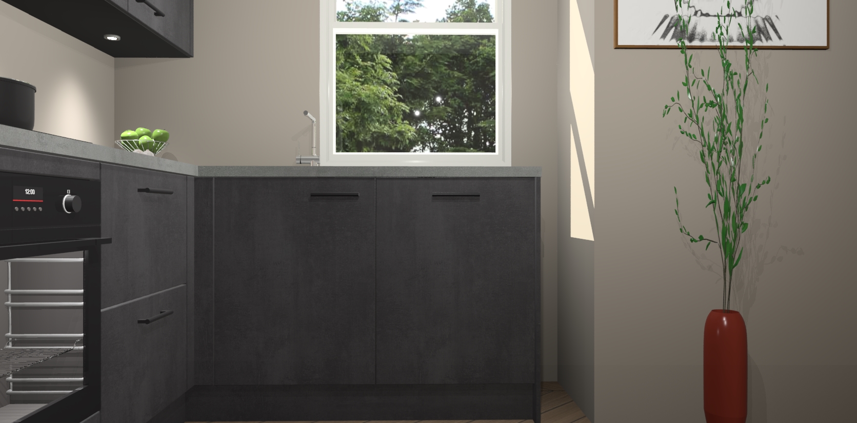 De Beton Zwarte keuken Geneve is uitgerust met 5 inbouwapparaten - een oven, inductiekookplaat, afzuigkap, vaatwasser en koelkast - voor al uw kook- en bewaarbehoeftes. U kunt deze apparaten desgewenst eenvoudig upgraden naar AEG of de oven omruilen voor een combimagnetron na het plaatsen van uw bestelling. En met de soft close deuren, voldoende opbergruimte en kasten die voorgemonteerd worden geleverd, bent u in een mum van tijd klaar om heerlijke maaltijden te bereiden!