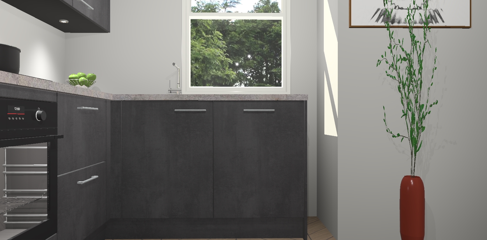 De Beton Zwarte keuken Geneve is precies wat u nodig heeft als u op zoek bent naar modern design, versmolten met tijdloze schoonheid. De strakke afwerking voegt klasse toe terwijl het toch een uitnodigende sfeer behoudt; zeker om zowel gasten als uzelf te inspireren om in stijl te gaan koken! En nog beter, het zal uw budget niet breken - dus waarom wachten? Met de Beton Zwarte keuken Geneve bent u verzekerd van kwaliteit zonder in te leveren op de prijs!