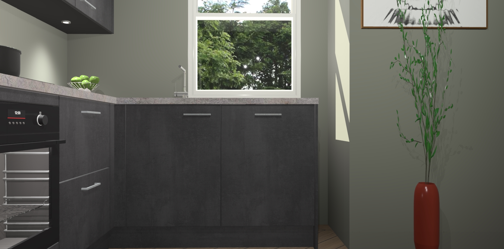 De Beton Zwarte keuken Geneve is precies wat u nodig heeft als u op zoek bent naar modern design, versmolten met tijdloze schoonheid. De strakke afwerking voegt klasse toe terwijl het toch een uitnodigende sfeer behoudt; zeker om zowel gasten als uzelf te inspireren om in stijl te gaan koken! En nog beter, het zal uw budget niet breken - dus waarom wachten? Met de Beton Zwarte keuken Geneve bent u verzekerd van kwaliteit zonder in te leveren op de prijs!