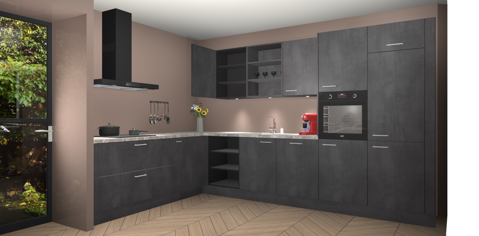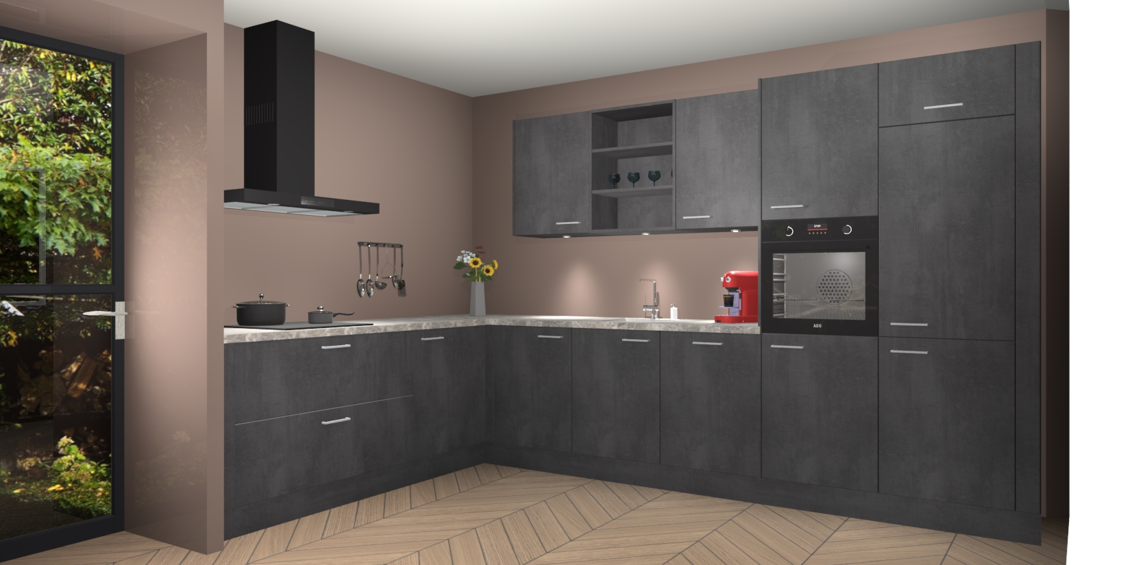 Dit is de perfecte keuken voor wie op zoek is naar een luxueuze stijl zonder zijn portemonnee te legen! Het chique ontwerp van Beton Zwarte keuken Gotenburg voegt dat vleugje verfijning toe aan elk huis.