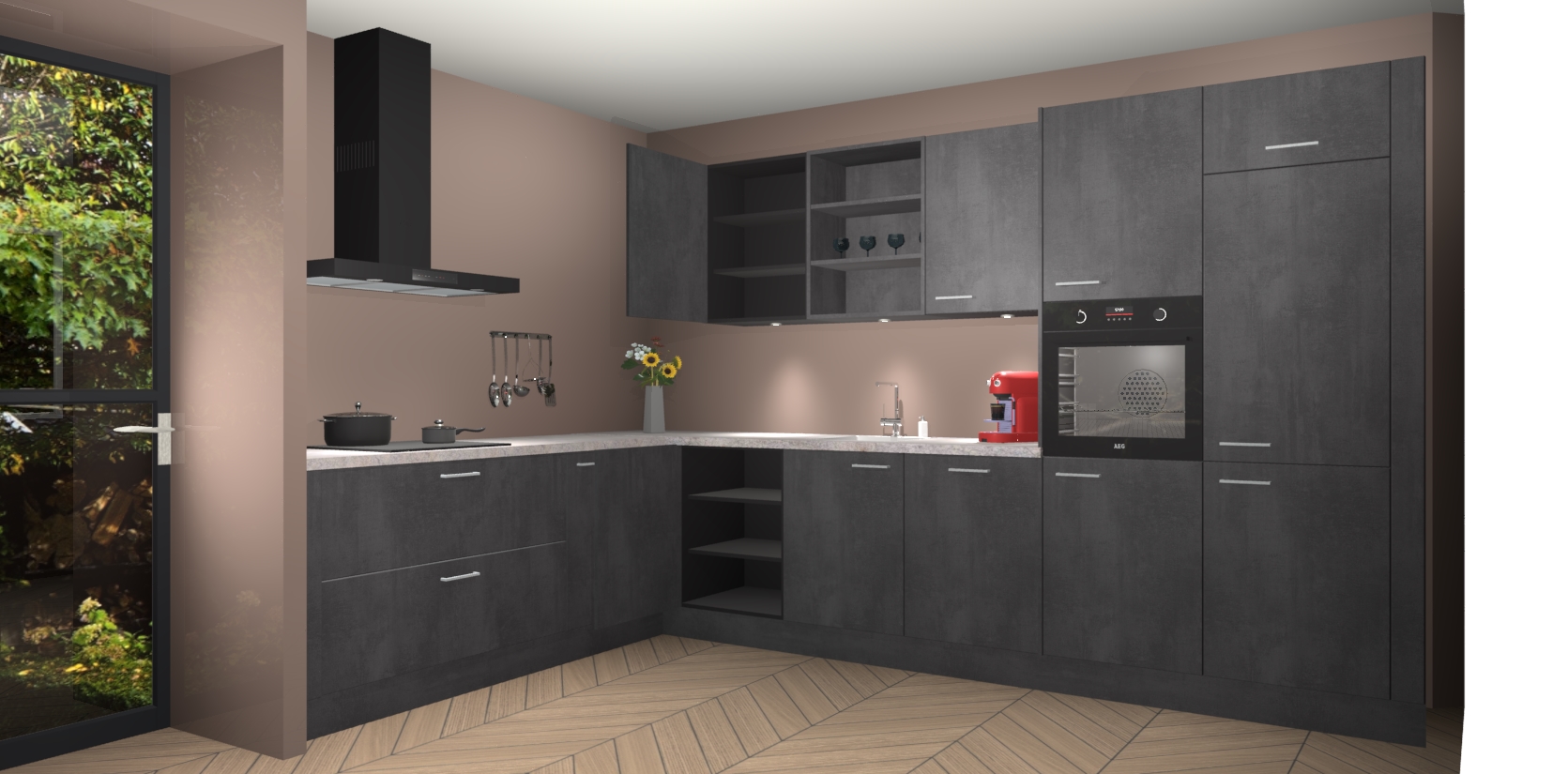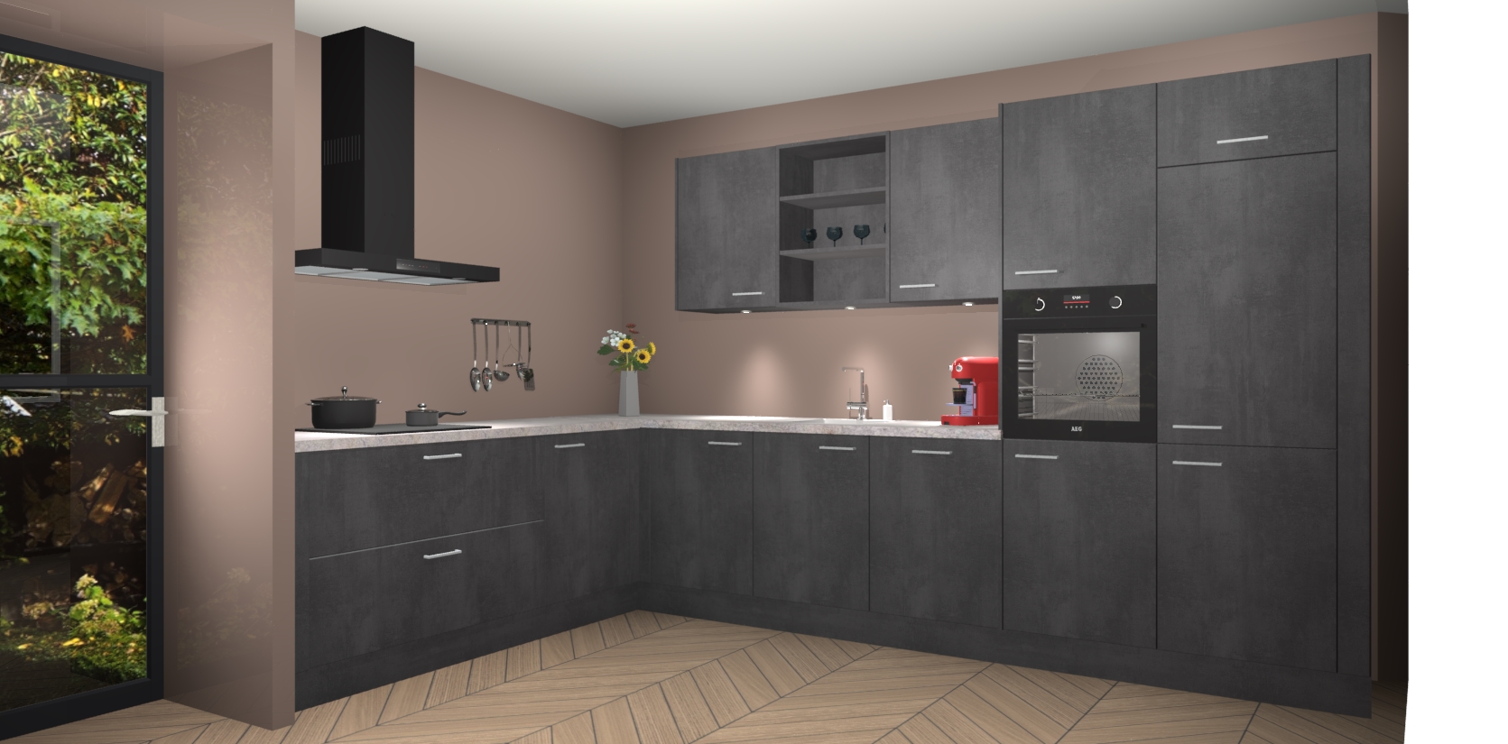 Dit is de perfecte keuken voor wie op zoek is naar een luxueuze stijl zonder zijn portemonnee te legen! Het chique ontwerp van Beton Zwarte keuken Gotenburg voegt dat vleugje verfijning toe aan elk huis.