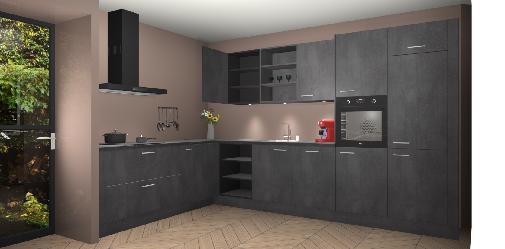 Dit is de perfecte keuken voor wie op zoek is naar een luxueuze stijl zonder zijn portemonnee te legen! Het chique ontwerp van Beton Zwarte keuken Gotenburg voegt dat vleugje verfijning toe aan elk huis.