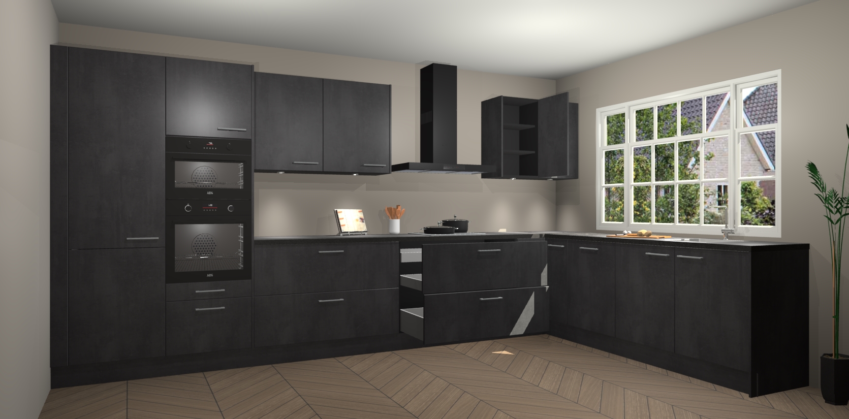Heeft u nog apparatuur nodig? Geen probleem: de beton zwarte keuken Graz bevat vijf ingebouwde apparaten - een oven, inductiekookplaat, afzuigkap, vaatwasser en koelkast - die gemakkelijk kunnen worden bijgewerkt naar AEG na bestelling. En als dat nog niet genoeg is; onze kasten worden pre-geassembleerd geleverd en zijn verkrijgbaar tegen een vastgeroeste lage prijs! U hoeft nooit meer te zoeken naar goede kwaliteit en service want onze producten hebben echt Duitse kwaliteit.