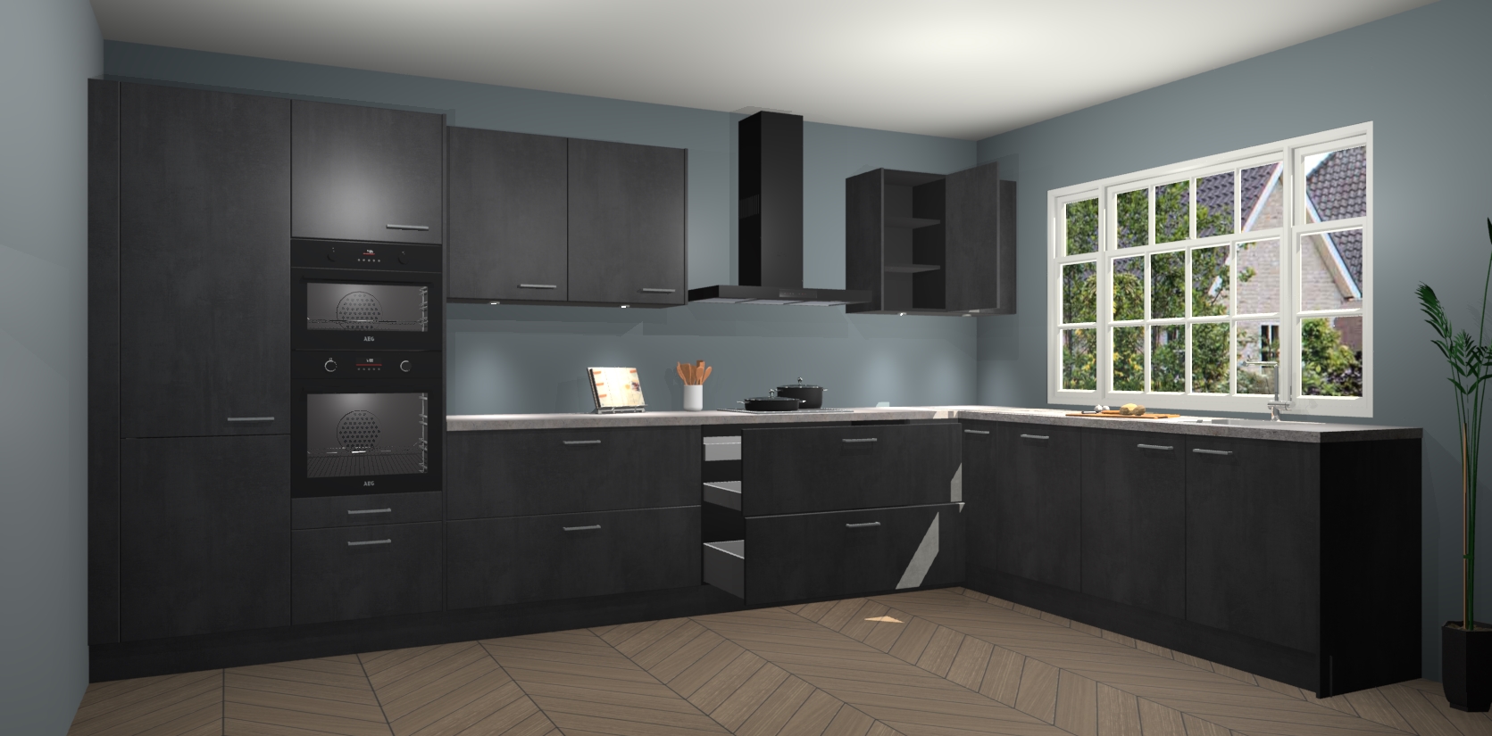 Heeft u nog apparatuur nodig? Geen probleem: de beton zwarte keuken Graz bevat vijf ingebouwde apparaten - een oven, inductiekookplaat, afzuigkap, vaatwasser en koelkast - die gemakkelijk kunnen worden bijgewerkt naar AEG na bestelling. En als dat nog niet genoeg is; onze kasten worden pre-geassembleerd geleverd en zijn verkrijgbaar tegen een vastgeroeste lage prijs! U hoeft nooit meer te zoeken naar goede kwaliteit en service want onze producten hebben echt Duitse kwaliteit.