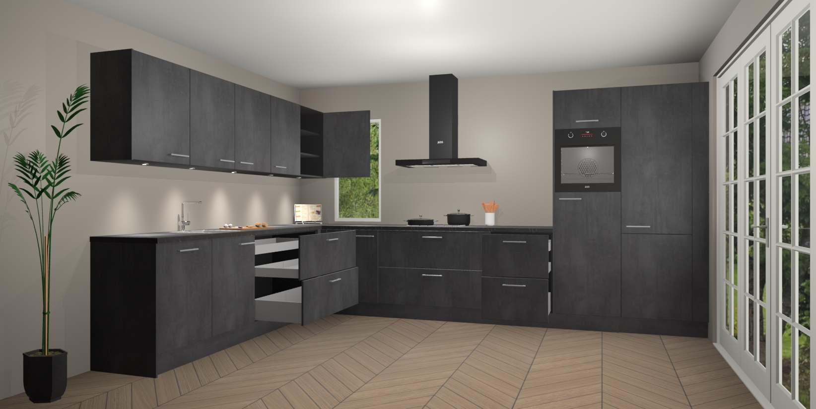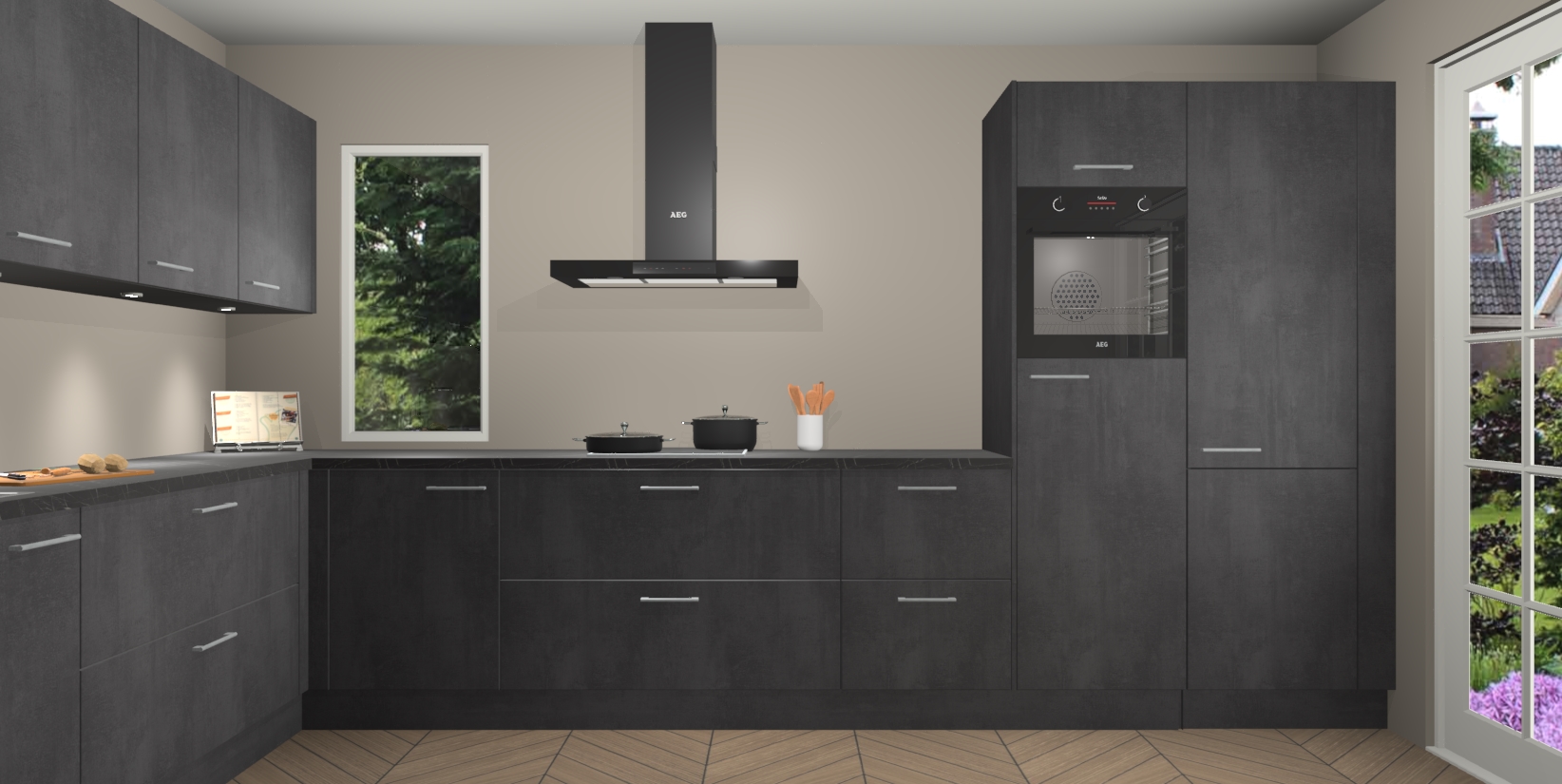 Heeft u nog apparatuur nodig? Geen probleem: de beton zwarte keuken Harare bevat vijf ingebouwde apparaten - een oven, inductiekookplaat, afzuigkap, vaatwasser en koelkast - die gemakkelijk kunnen worden bijgewerkt naar AEG na bestelling. En als dat nog niet genoeg is; onze kasten worden pre-geassembleerd geleverd en zijn verkrijgbaar tegen een vastgeroeste lage prijs! U hoeft nooit meer te zoeken naar goede kwaliteit en service want onze producten hebben echt Duitse kwaliteit.