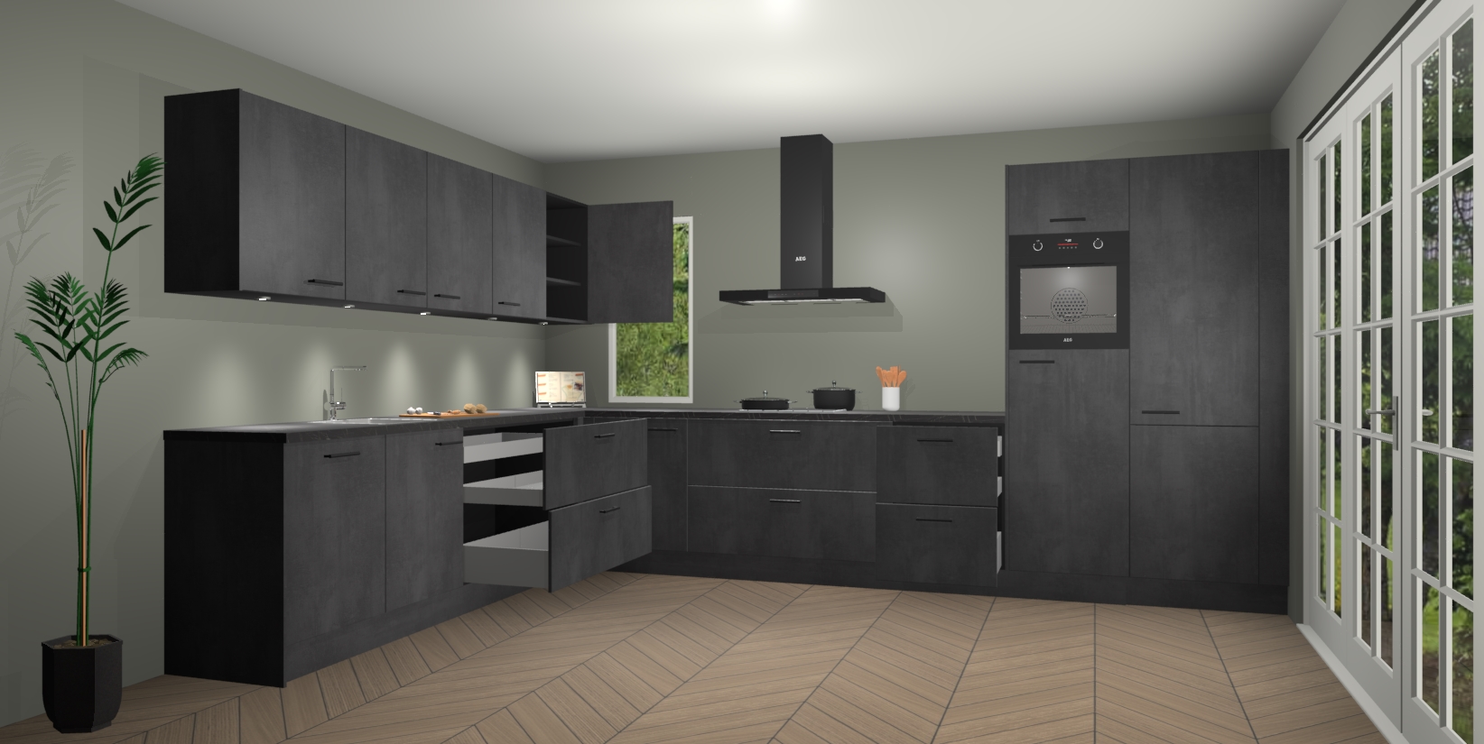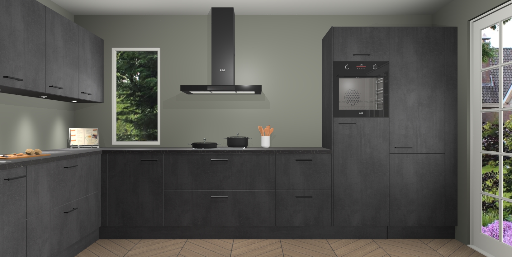 Heeft u nog apparatuur nodig? Geen probleem: de beton zwarte keuken Harare bevat vijf ingebouwde apparaten - een oven, inductiekookplaat, afzuigkap, vaatwasser en koelkast - die gemakkelijk kunnen worden bijgewerkt naar AEG na bestelling. En als dat nog niet genoeg is; onze kasten worden pre-geassembleerd geleverd en zijn verkrijgbaar tegen een vastgeroeste lage prijs! U hoeft nooit meer te zoeken naar goede kwaliteit en service want onze producten hebben echt Duitse kwaliteit.