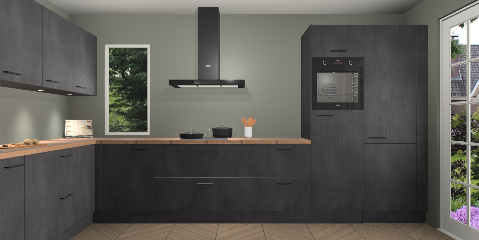 Heeft u nog apparatuur nodig? Geen probleem: de beton zwarte keuken Harare bevat vijf ingebouwde apparaten - een oven, inductiekookplaat, afzuigkap, vaatwasser en koelkast - die gemakkelijk kunnen worden bijgewerkt naar AEG na bestelling. En als dat nog niet genoeg is; onze kasten worden pre-geassembleerd geleverd en zijn verkrijgbaar tegen een vastgeroeste lage prijs! U hoeft nooit meer te zoeken naar goede kwaliteit en service want onze producten hebben echt Duitse kwaliteit.