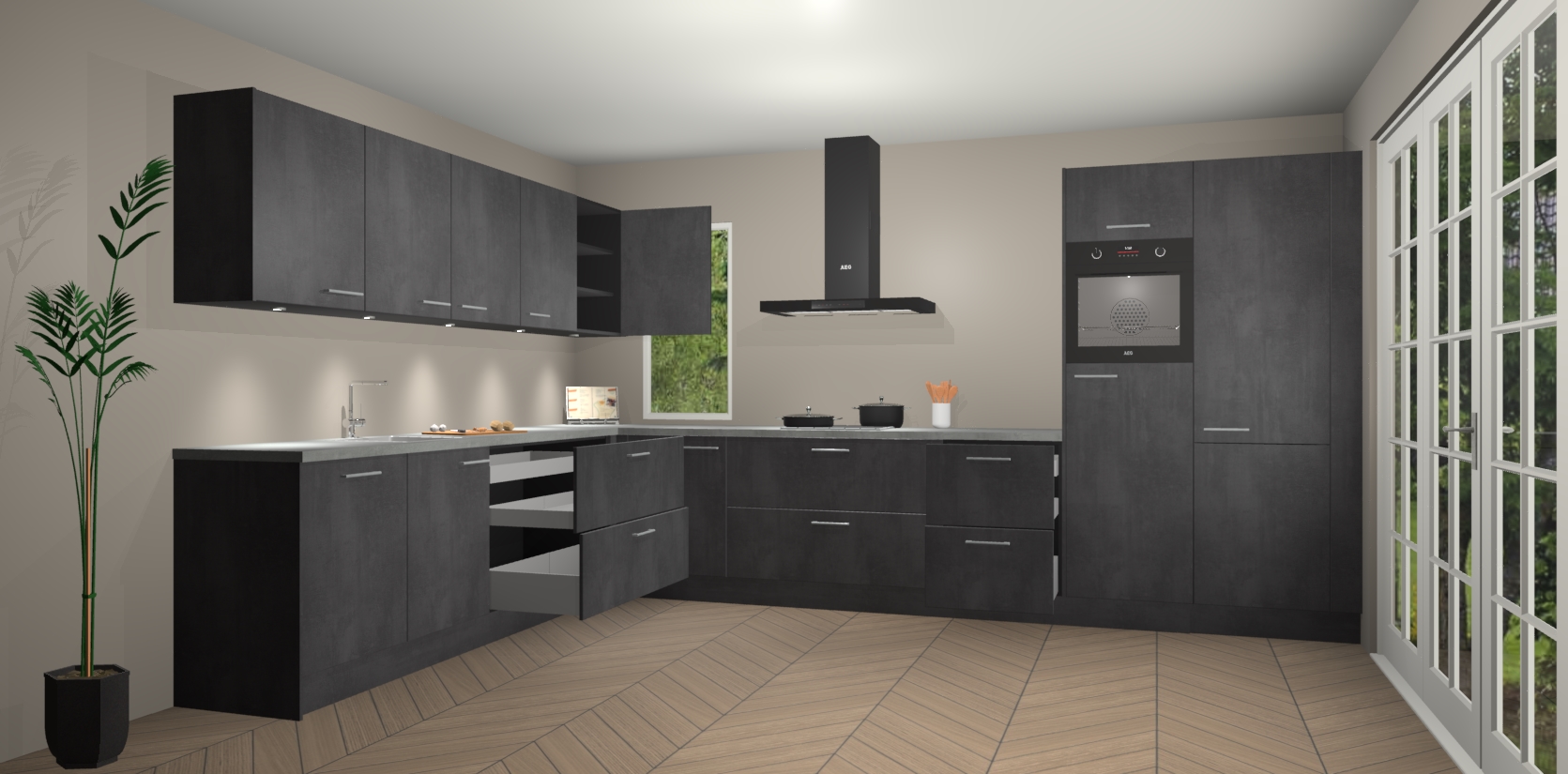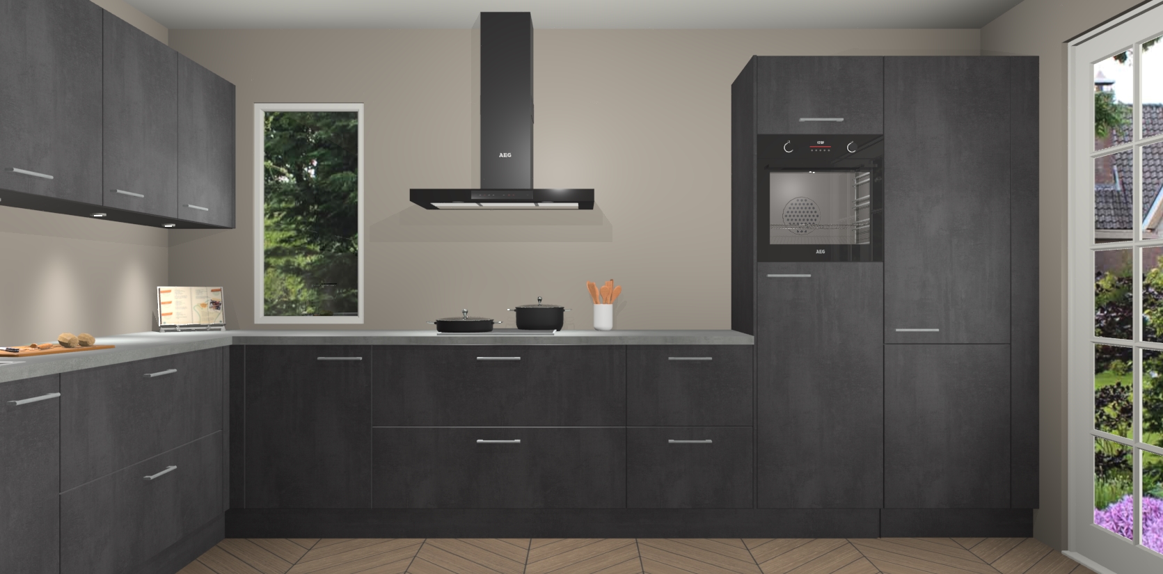 Heeft u nog apparatuur nodig? Geen probleem: de beton zwarte keuken Harare bevat vijf ingebouwde apparaten - een oven, inductiekookplaat, afzuigkap, vaatwasser en koelkast - die gemakkelijk kunnen worden bijgewerkt naar AEG na bestelling. En als dat nog niet genoeg is; onze kasten worden pre-geassembleerd geleverd en zijn verkrijgbaar tegen een vastgeroeste lage prijs! U hoeft nooit meer te zoeken naar goede kwaliteit en service want onze producten hebben echt Duitse kwaliteit.
