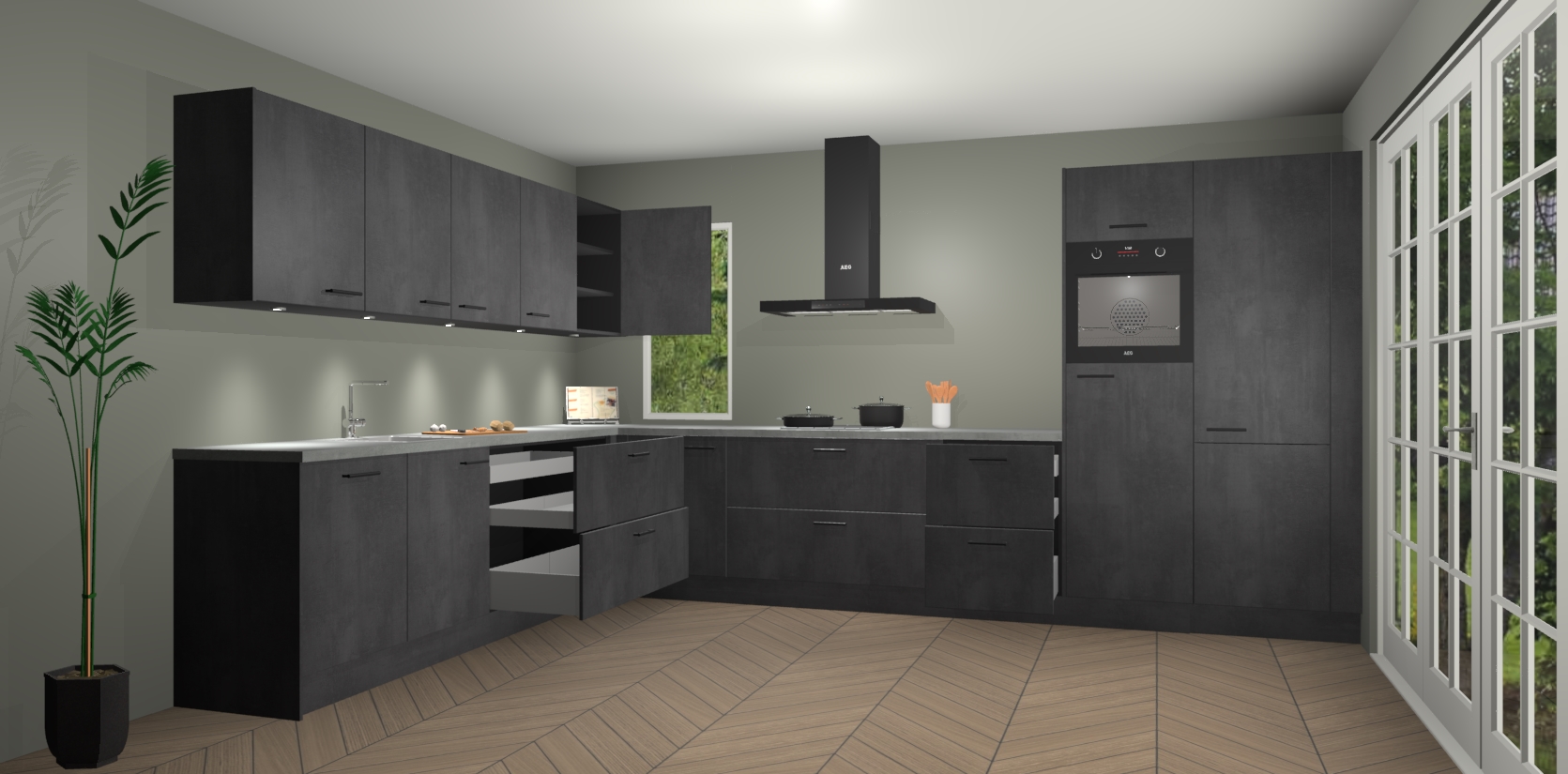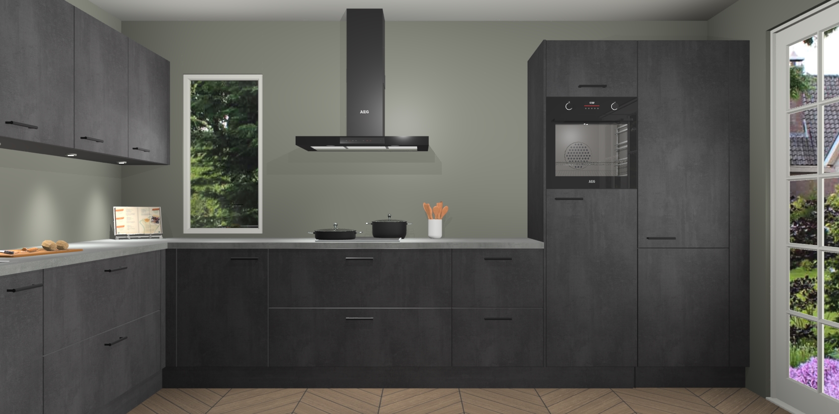 Heeft u nog apparatuur nodig? Geen probleem: de beton zwarte keuken Harare bevat vijf ingebouwde apparaten - een oven, inductiekookplaat, afzuigkap, vaatwasser en koelkast - die gemakkelijk kunnen worden bijgewerkt naar AEG na bestelling. En als dat nog niet genoeg is; onze kasten worden pre-geassembleerd geleverd en zijn verkrijgbaar tegen een vastgeroeste lage prijs! U hoeft nooit meer te zoeken naar goede kwaliteit en service want onze producten hebben echt Duitse kwaliteit.