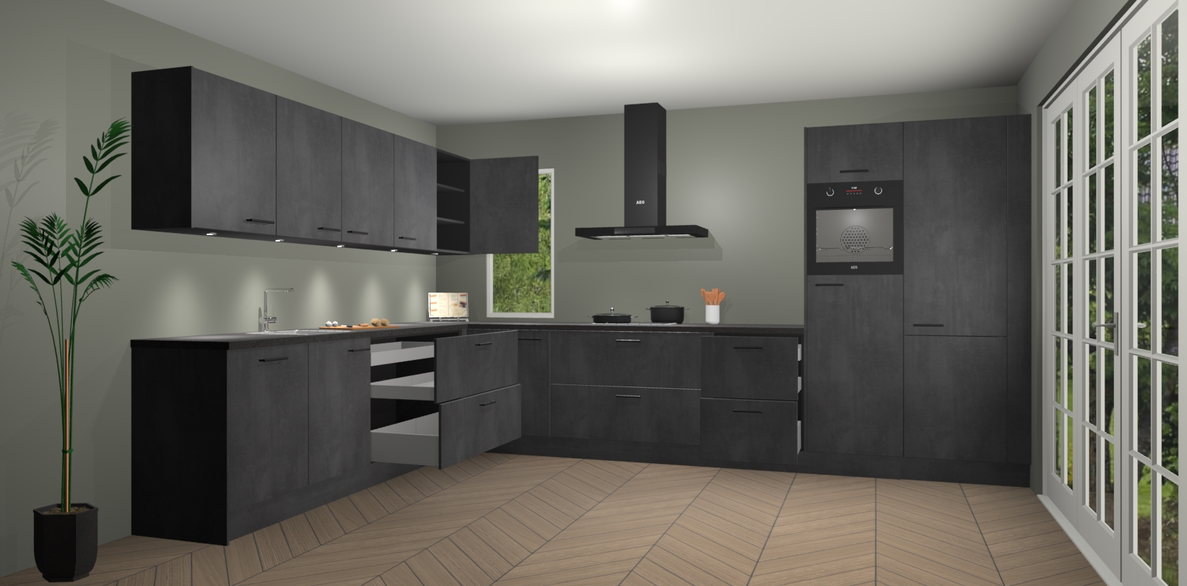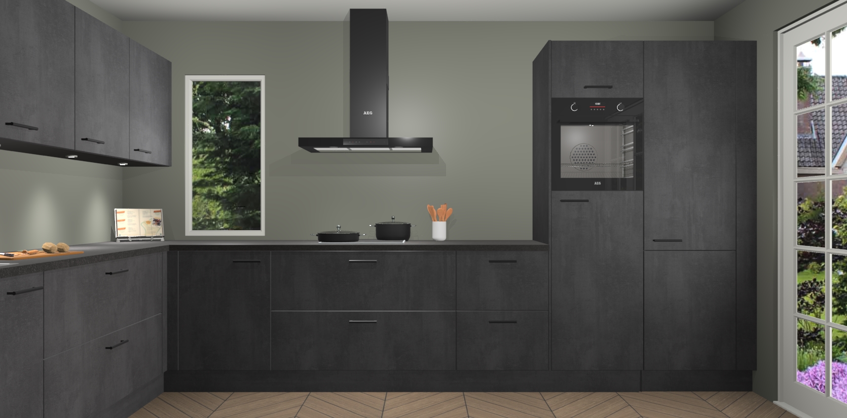Heeft u nog apparatuur nodig? Geen probleem: de beton zwarte keuken Harare bevat vijf ingebouwde apparaten - een oven, inductiekookplaat, afzuigkap, vaatwasser en koelkast - die gemakkelijk kunnen worden bijgewerkt naar AEG na bestelling. En als dat nog niet genoeg is; onze kasten worden pre-geassembleerd geleverd en zijn verkrijgbaar tegen een vastgeroeste lage prijs! U hoeft nooit meer te zoeken naar goede kwaliteit en service want onze producten hebben echt Duitse kwaliteit.