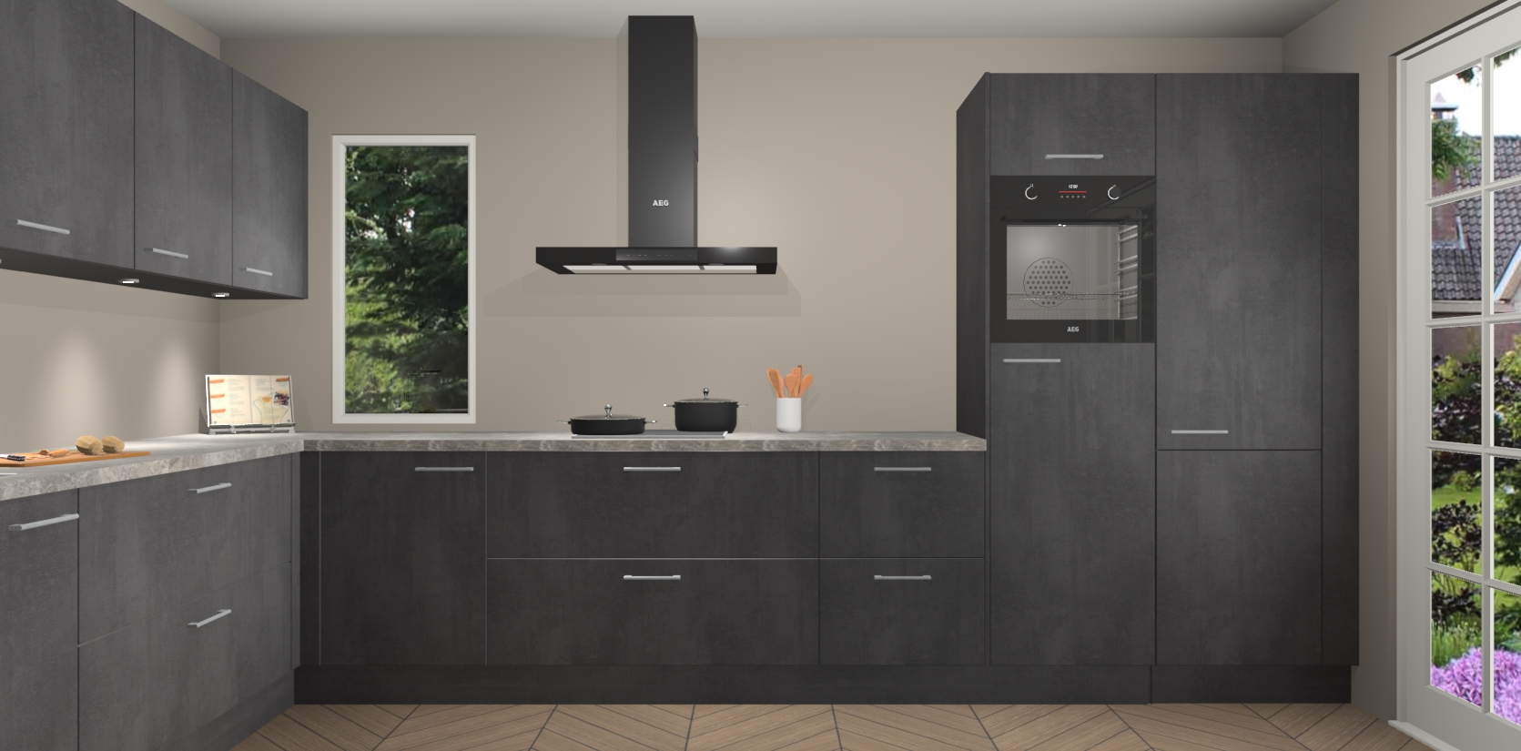Heeft u nog apparatuur nodig? Geen probleem: de beton zwarte keuken Harare bevat vijf ingebouwde apparaten - een oven, inductiekookplaat, afzuigkap, vaatwasser en koelkast - die gemakkelijk kunnen worden bijgewerkt naar AEG na bestelling. En als dat nog niet genoeg is; onze kasten worden pre-geassembleerd geleverd en zijn verkrijgbaar tegen een vastgeroeste lage prijs! U hoeft nooit meer te zoeken naar goede kwaliteit en service want onze producten hebben echt Duitse kwaliteit.