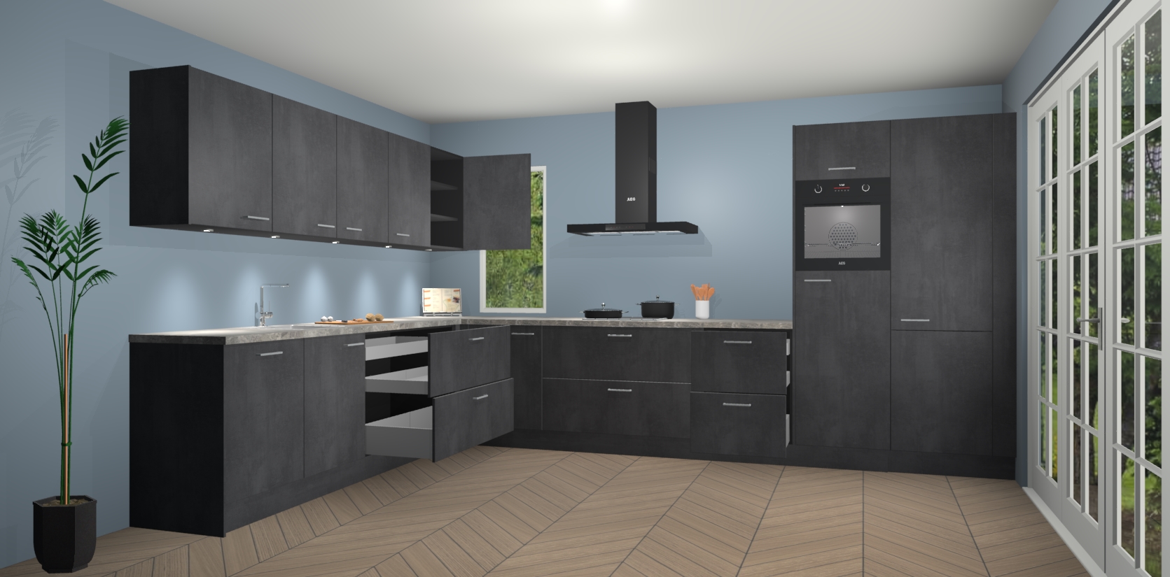 Heeft u nog apparatuur nodig? Geen probleem: de beton zwarte keuken Harare bevat vijf ingebouwde apparaten - een oven, inductiekookplaat, afzuigkap, vaatwasser en koelkast - die gemakkelijk kunnen worden bijgewerkt naar AEG na bestelling. En als dat nog niet genoeg is; onze kasten worden pre-geassembleerd geleverd en zijn verkrijgbaar tegen een vastgeroeste lage prijs! U hoeft nooit meer te zoeken naar goede kwaliteit en service want onze producten hebben echt Duitse kwaliteit.