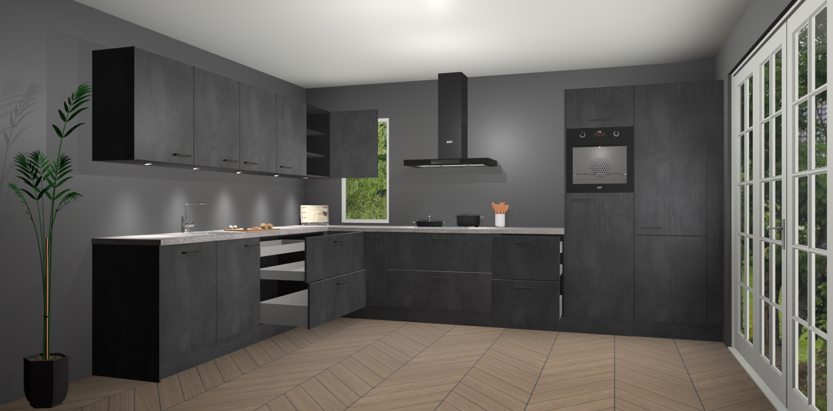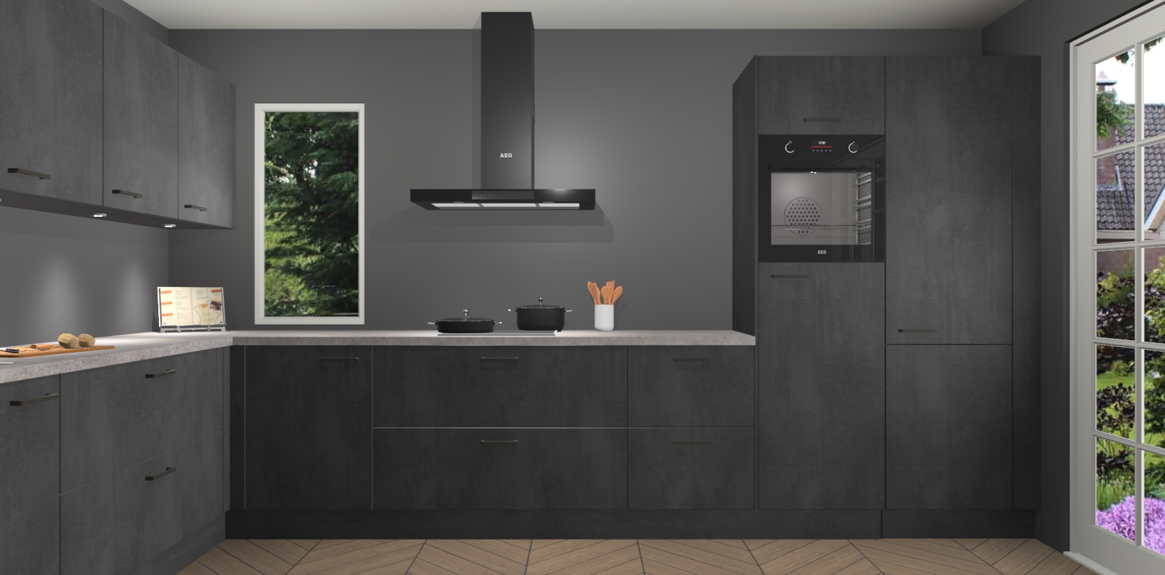 Heeft u nog apparatuur nodig? Geen probleem: de beton zwarte keuken Harare bevat vijf ingebouwde apparaten - een oven, inductiekookplaat, afzuigkap, vaatwasser en koelkast - die gemakkelijk kunnen worden bijgewerkt naar AEG na bestelling. En als dat nog niet genoeg is; onze kasten worden pre-geassembleerd geleverd en zijn verkrijgbaar tegen een vastgeroeste lage prijs! U hoeft nooit meer te zoeken naar goede kwaliteit en service want onze producten hebben echt Duitse kwaliteit.