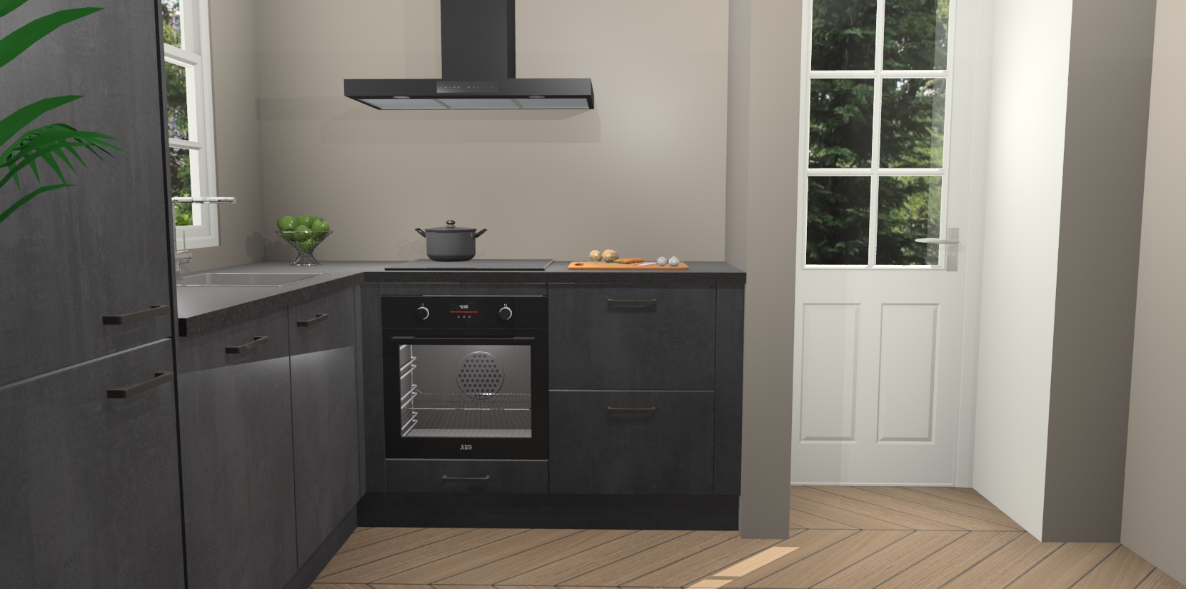 Plus: de Beton Zwarte keuken Harbin is kant en klaar voorzien van 5 inbouwapparaten. U krijgt er direct bij: een oven, inductiekookplaat, afzuigkap, vaatwasser én koelkast. En als dat nog niet luxueus genoeg is, heeft u nog de mogelijkheid om de apparaten te upgraden naar AEG of om uw oven te vervangen door een combimagnetron. Ook fijn van voordeel zijn de softclosing-deuren die ervoor zorgen dat u geen geluid hoeft te maken wanneer u weer uw koelkastdeurtjes dichtdoet!