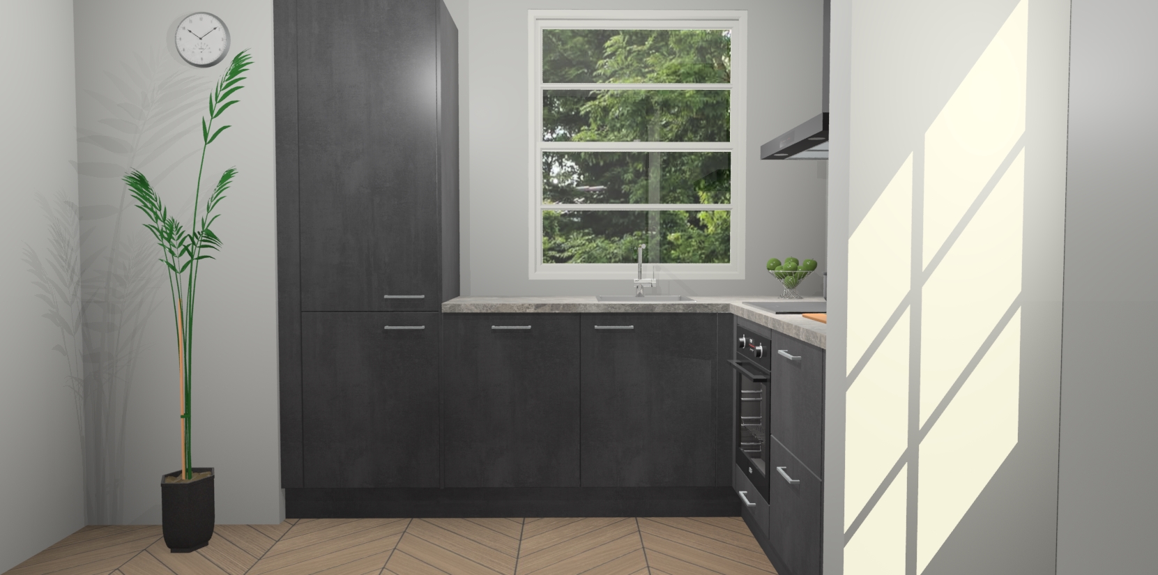Wilt u een echte aanwinst voor uw keuken, maar bent u op zoek naar iets specialers dan de standaardkeukens? Kies dan voor de Beton Zwarte keuken Harbin! Dit prachtige hoekkeukenontwerp geeft u alle ruimte om optimaal te genieten van heerlijk koken. Het uitmuntende afwerkingsniveau, de fraaie houtstructuur en de sfeervolle zwarte grepen maken van de Beton Zwarte keuken Harbin de perfecte keuze voor zowel enthousiaste thuiskoks als design-minded interieurliefhebbers.