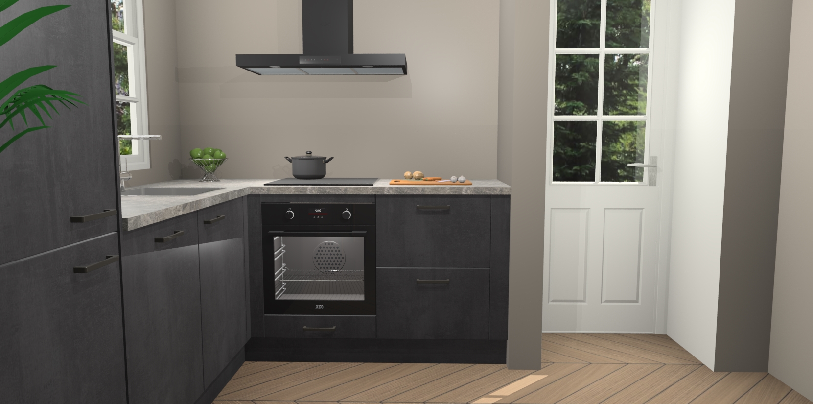 Plus: de Beton Zwarte keuken Harbin is kant en klaar voorzien van 5 inbouwapparaten. U krijgt er direct bij: een oven, inductiekookplaat, afzuigkap, vaatwasser én koelkast. En als dat nog niet luxueus genoeg is, heeft u nog de mogelijkheid om de apparaten te upgraden naar AEG of om uw oven te vervangen door een combimagnetron. Ook fijn van voordeel zijn de softclosing-deuren die ervoor zorgen dat u geen geluid hoeft te maken wanneer u weer uw koelkastdeurtjes dichtdoet!