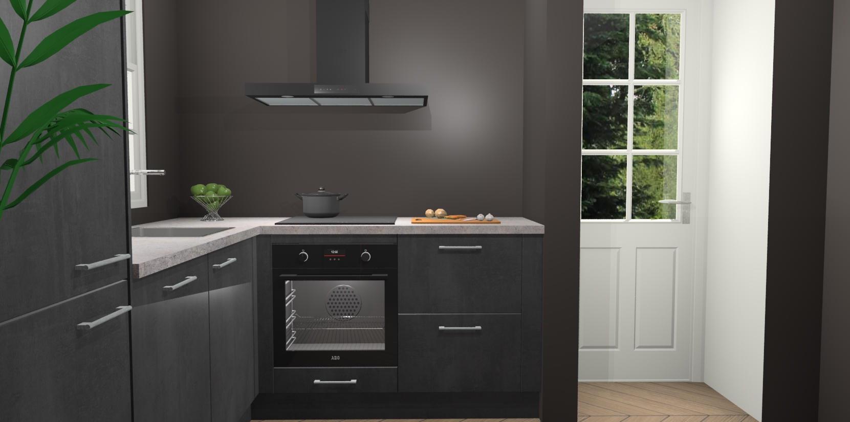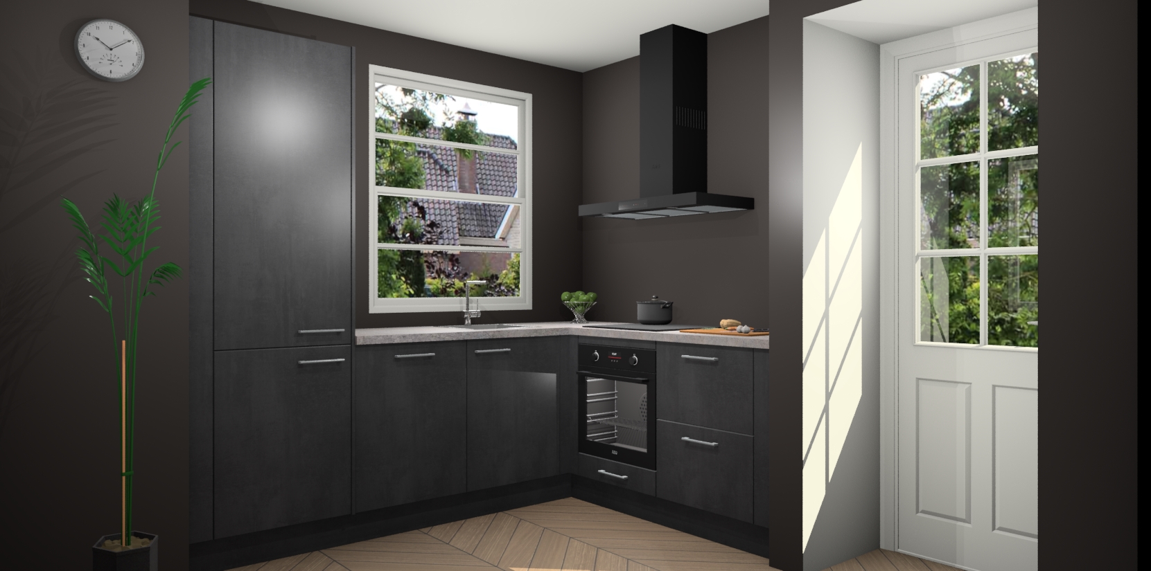 Plus: de Beton Zwarte keuken Harbin is kant en klaar voorzien van 5 inbouwapparaten. U krijgt er direct bij: een oven, inductiekookplaat, afzuigkap, vaatwasser én koelkast. En als dat nog niet luxueus genoeg is, heeft u nog de mogelijkheid om de apparaten te upgraden naar AEG of om uw oven te vervangen door een combimagnetron. Ook fijn van voordeel zijn de softclosing-deuren die ervoor zorgen dat u geen geluid hoeft te maken wanneer u weer uw koelkastdeurtjes dichtdoet!