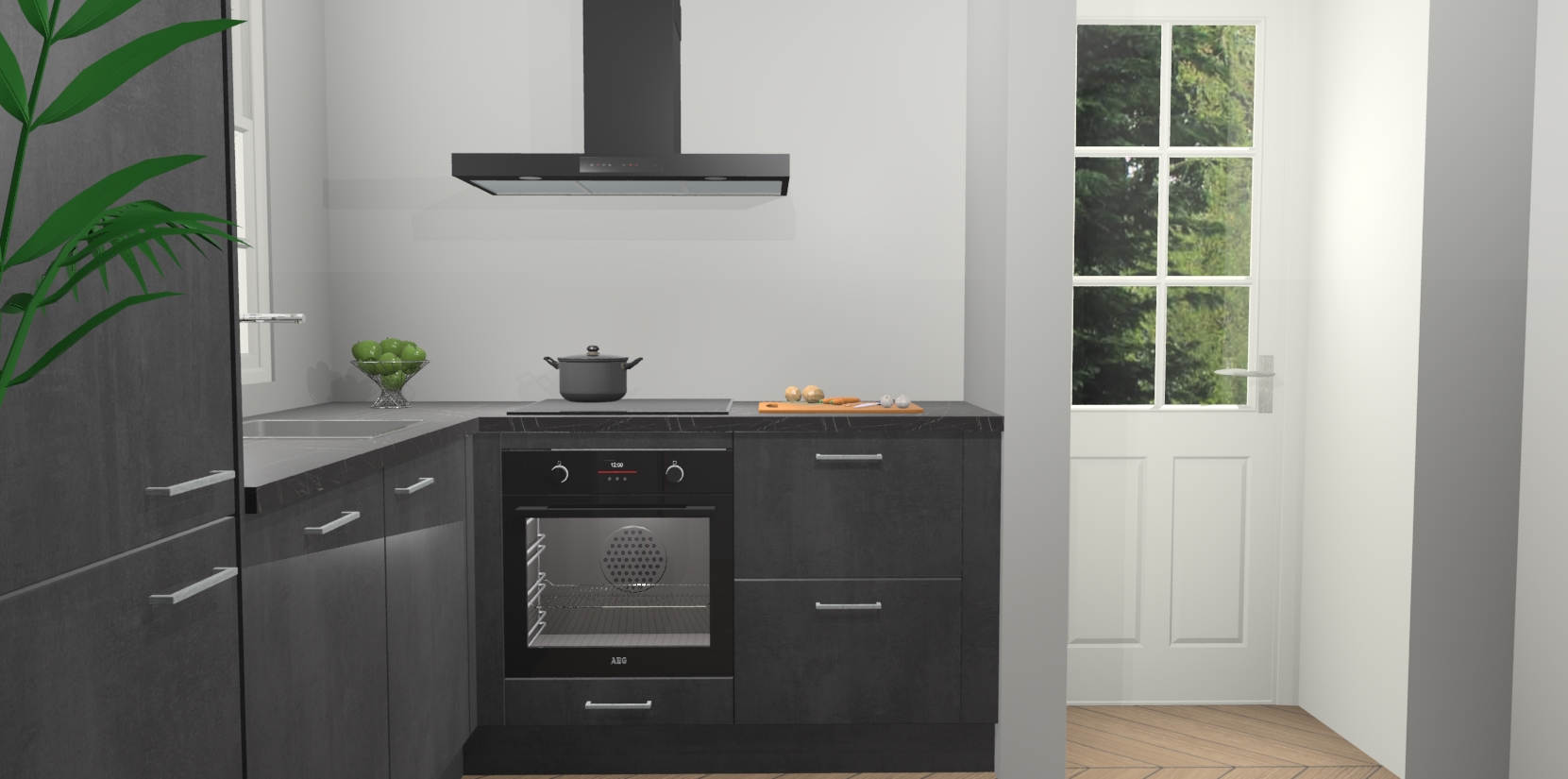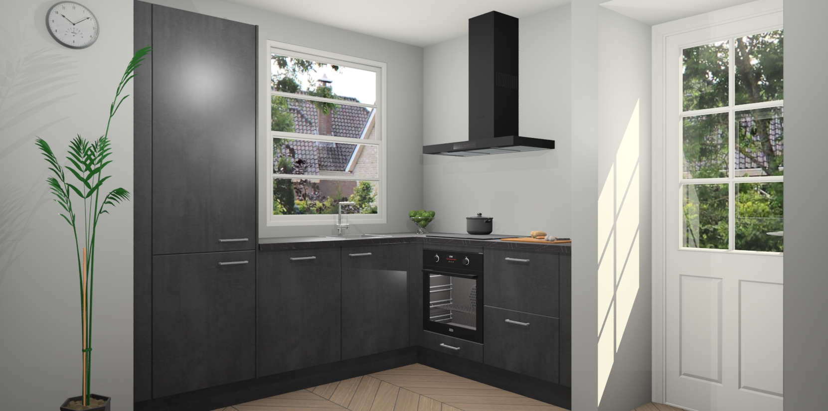 Plus: de Beton Zwarte keuken Harbin is kant en klaar voorzien van 5 inbouwapparaten. U krijgt er direct bij: een oven, inductiekookplaat, afzuigkap, vaatwasser én koelkast. En als dat nog niet luxueus genoeg is, heeft u nog de mogelijkheid om de apparaten te upgraden naar AEG of om uw oven te vervangen door een combimagnetron. Ook fijn van voordeel zijn de softclosing-deuren die ervoor zorgen dat u geen geluid hoeft te maken wanneer u weer uw koelkastdeurtjes dichtdoet!
