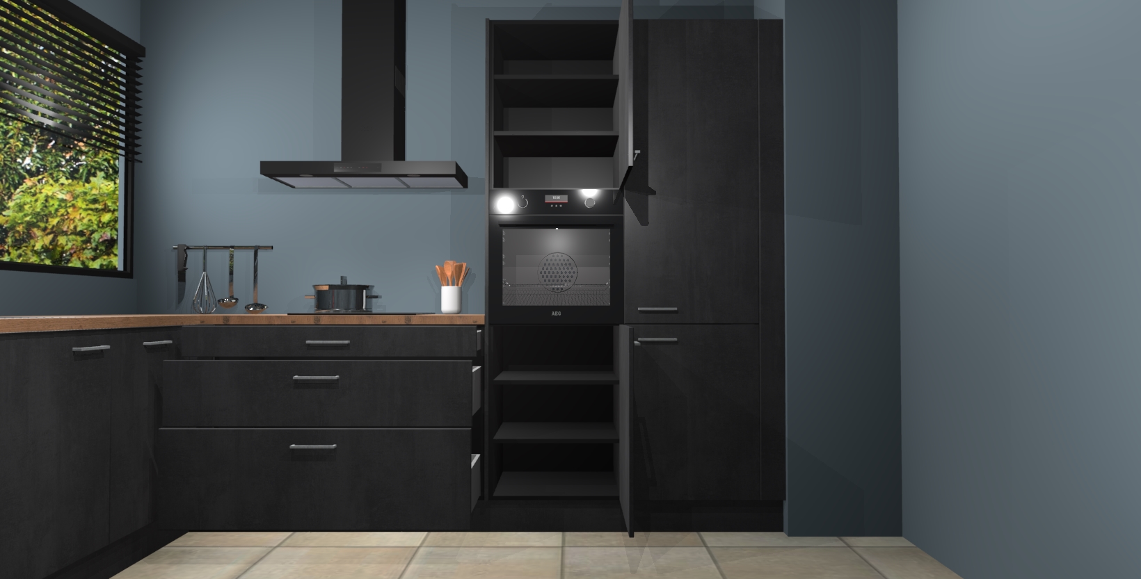 Met een modern, tijdloos design en ruime opslagruimte, zult u zich in no-time thuis voelen in uw nieuwe keuken. Uw leven wordt eenvoudiger met de soft-close deuren die voor het ultieme stille comfort zorgen - geen geluid dat u stoort terwijl u kookt. Ook is de keuken voorzien van 5 ingebouwde apparaten: een oven, inductie kookplaat, afzuigkap, vaatwasser en koelkast. Deze kunnen gemakkelijk na bestelling worden bijgewerkt naar AEG - waardoor uw luxe ervaring compleet is.