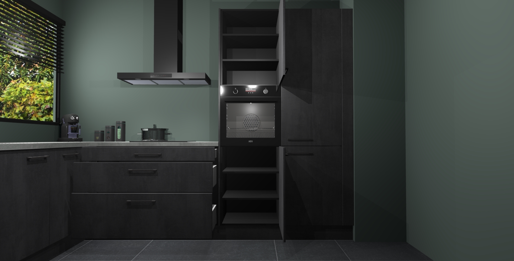 Met een modern, tijdloos design en ruime opslagruimte, zult u zich in no-time thuis voelen in uw nieuwe keuken. Uw leven wordt eenvoudiger met de soft-close deuren die voor het ultieme stille comfort zorgen - geen geluid dat u stoort terwijl u kookt. Ook is de keuken voorzien van 5 ingebouwde apparaten: een oven, inductie kookplaat, afzuigkap, vaatwasser en koelkast. Deze kunnen gemakkelijk na bestelling worden bijgewerkt naar AEG - waardoor uw luxe ervaring compleet is.