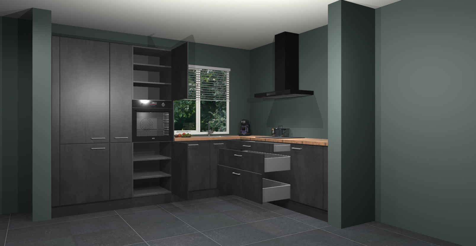 En dat is nog niet alles - de Beton zwarte keuken India wordt ook heel snel geleverd met 7 weken! De prijs is vastgesteld zodat u nooit onaangenaam verrast word door onverwachte kosten. Al binnen twee maanden kunt u beginnen te genieten van optimale functionaliteit in luxueuze stijl - wat wilt u nog meer? Bestel nu uw Beton zwarte  keuken India en ervaar ongekende flexibiliteit en stijlvol design!