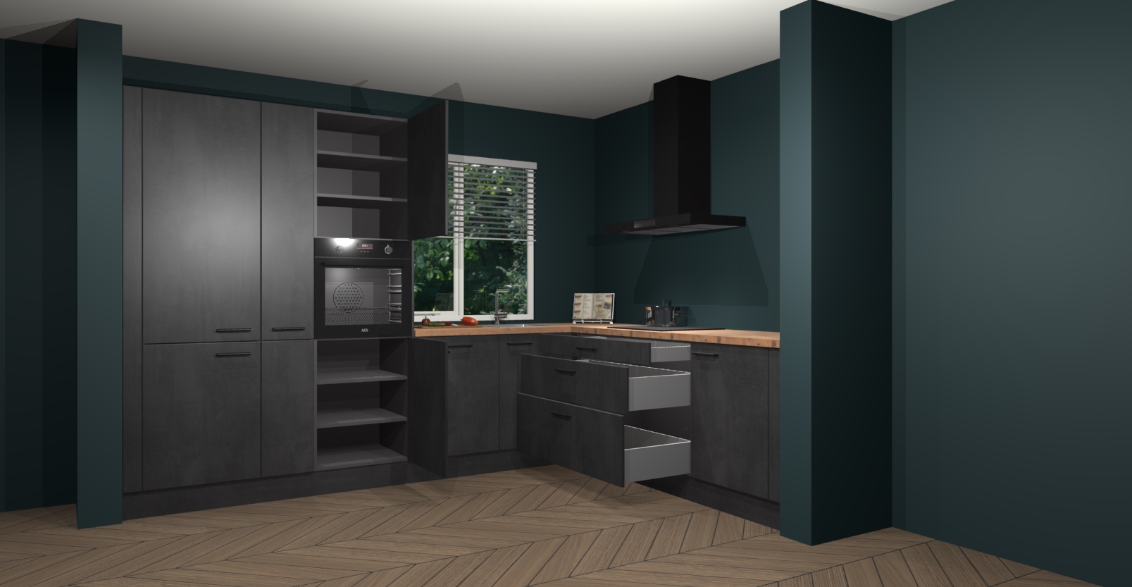 En dat is nog niet alles - de Beton zwarte keuken India wordt ook heel snel geleverd met 7 weken! De prijs is vastgesteld zodat u nooit onaangenaam verrast word door onverwachte kosten. Al binnen twee maanden kunt u beginnen te genieten van optimale functionaliteit in luxueuze stijl - wat wilt u nog meer? Bestel nu uw Beton zwarte keuken India en ervaar ongekende flexibiliteit en stijlvol design!