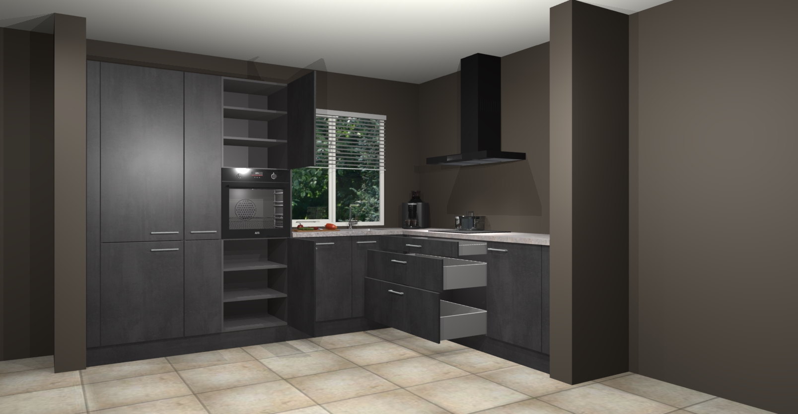 En dat is nog niet alles - de Beton zwarte keuken India wordt ook heel snel geleverd met 7 weken! De prijs is vastgesteld zodat u nooit onaangenaam verrast word door onverwachte kosten. Al binnen twee maanden kunt u beginnen te genieten van optimale functionaliteit in luxueuze stijl - wat wilt u nog meer? Bestel nu uw Beton zwarte  keuken India en ervaar ongekende flexibiliteit en stijlvol design!
