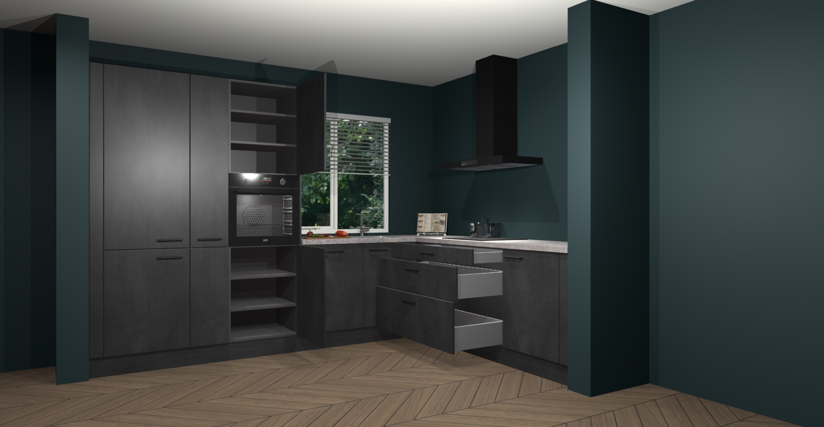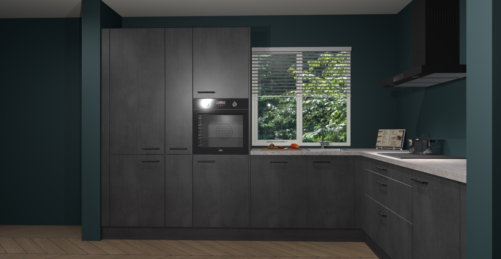 Met een modern, tijdloos design en ruime opslagruimte, zult u zich in no-time thuis voelen in uw nieuwe keuken. Uw leven wordt eenvoudiger met de soft-close deuren die voor het ultieme stille comfort zorgen - geen geluid dat u stoort terwijl u kookt. Ook is de keuken voorzien van 5 ingebouwde apparaten: een oven, inductie kookplaat, afzuigkap, vaatwasser en koelkast. Deze kunnen gemakkelijk na bestelling worden bijgewerkt naar AEG - waardoor uw luxe ervaring compleet is.