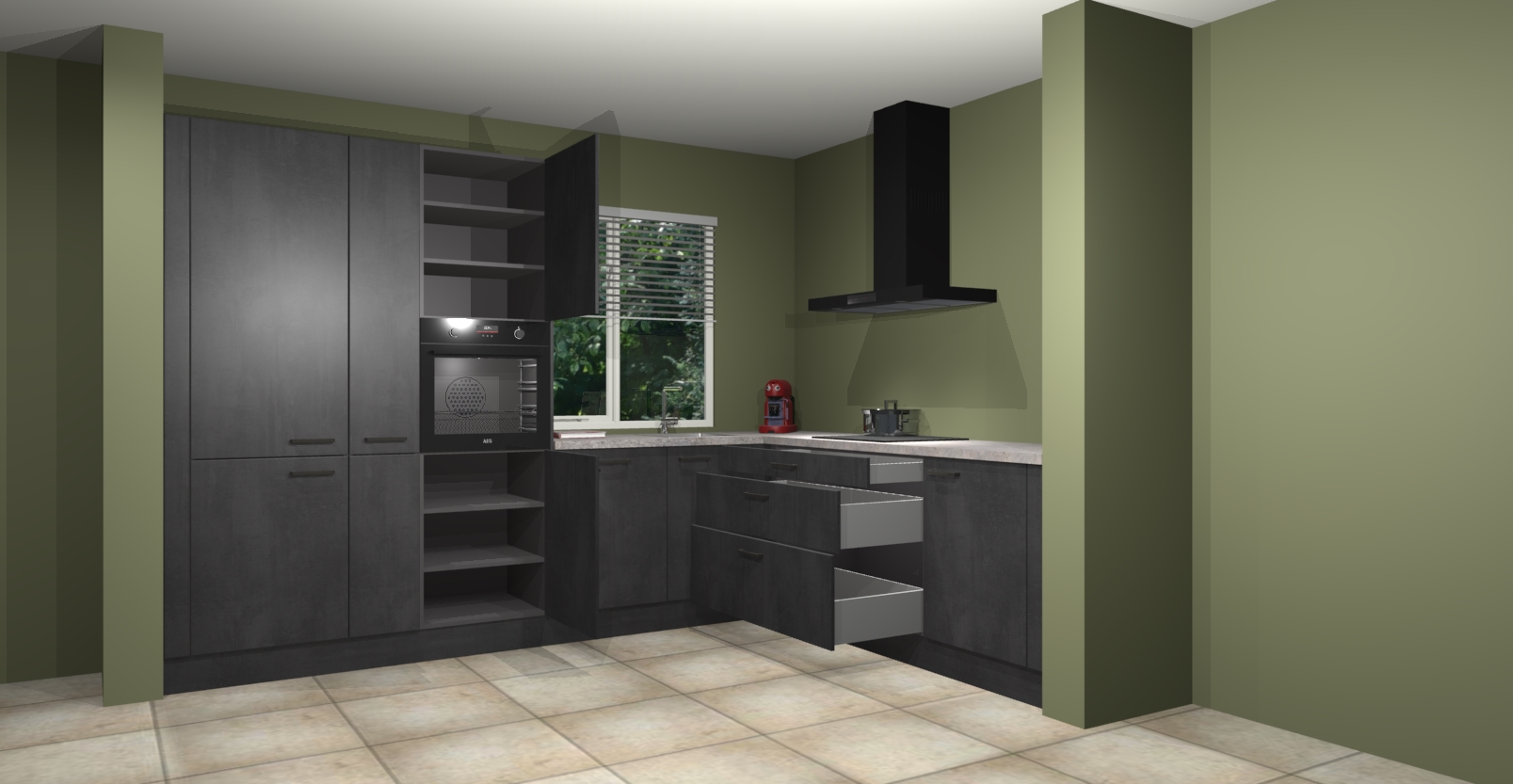 En dat is nog niet alles - de Beton zwarte keuken India wordt ook heel snel geleverd met 7 weken! De prijs is vastgesteld zodat u nooit onaangenaam verrast word door onverwachte kosten. Al binnen twee maanden kunt u beginnen te genieten van optimale functionaliteit in luxueuze stijl - wat wilt u nog meer? Bestel nu uw Beton zwarte keuken India en ervaar ongekende flexibiliteit en stijlvol design!