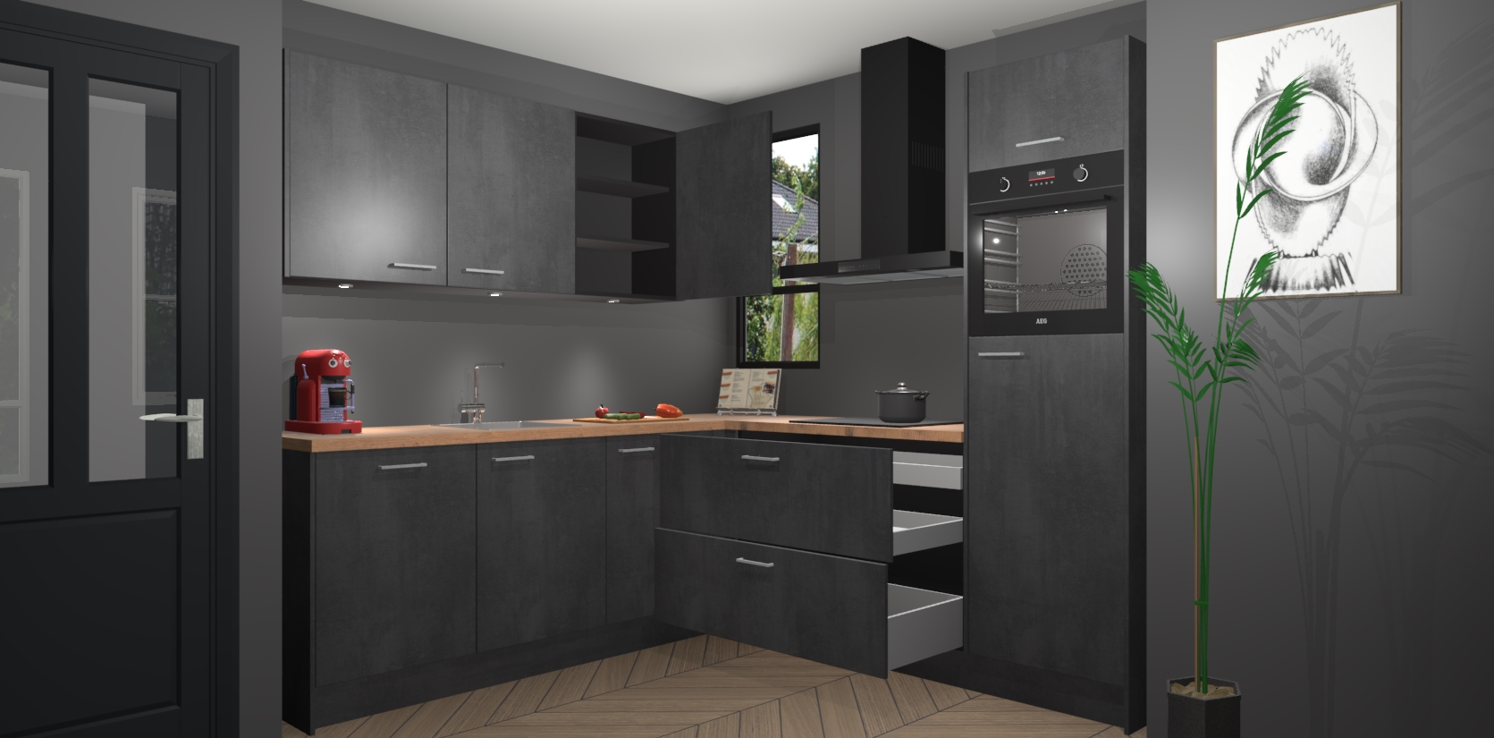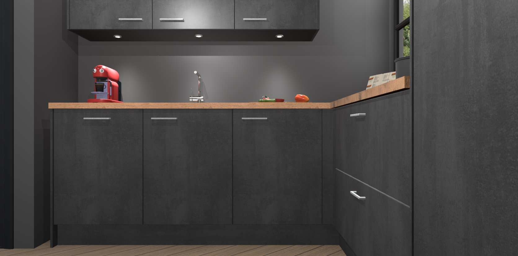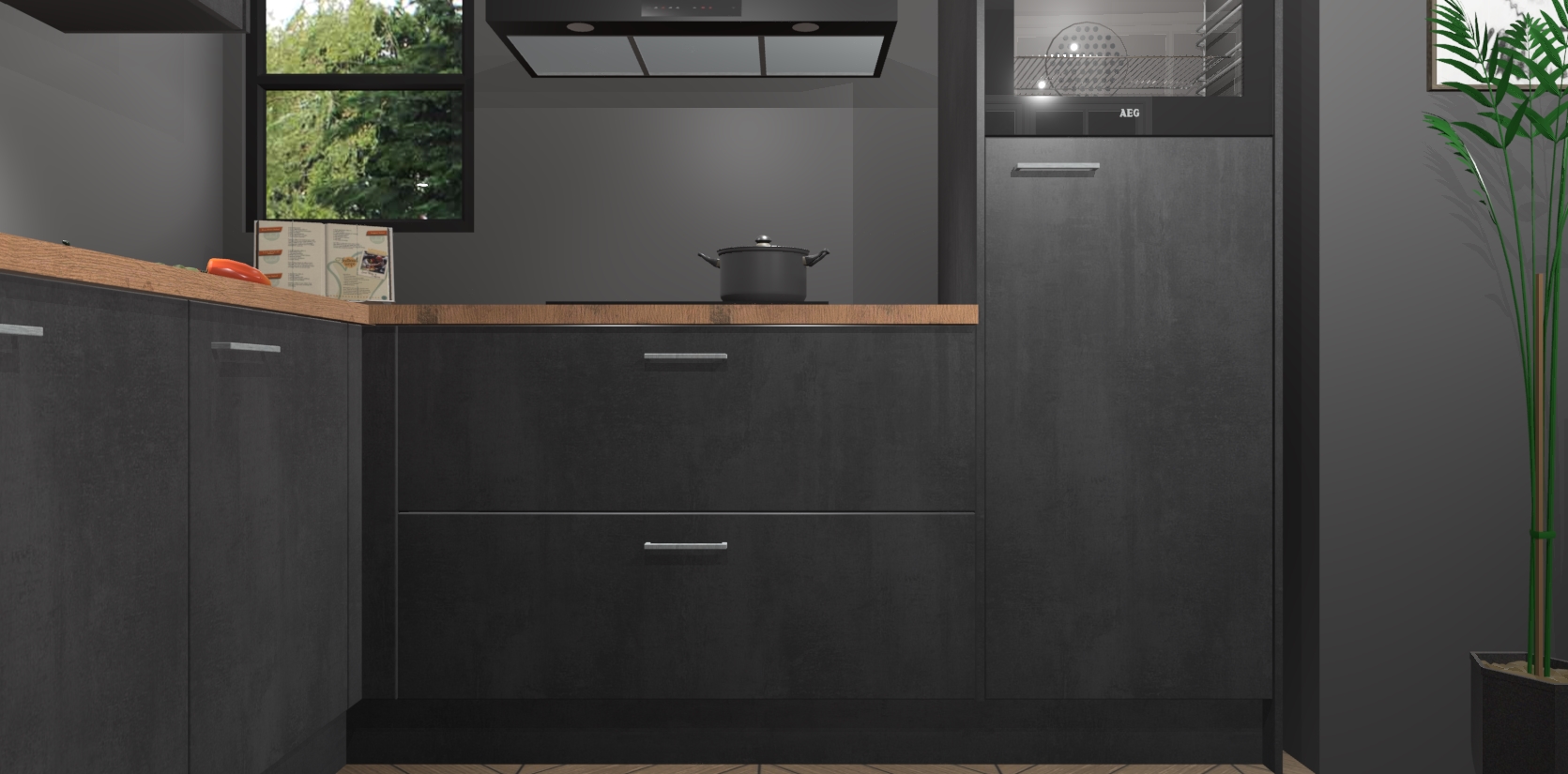 Inclusief plinten, stelpoten en werkblad