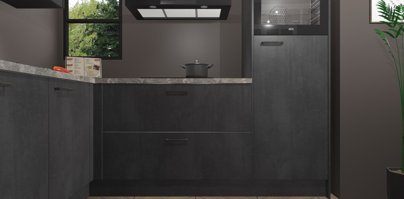 Inclusief plinten, stelpoten en werkblad