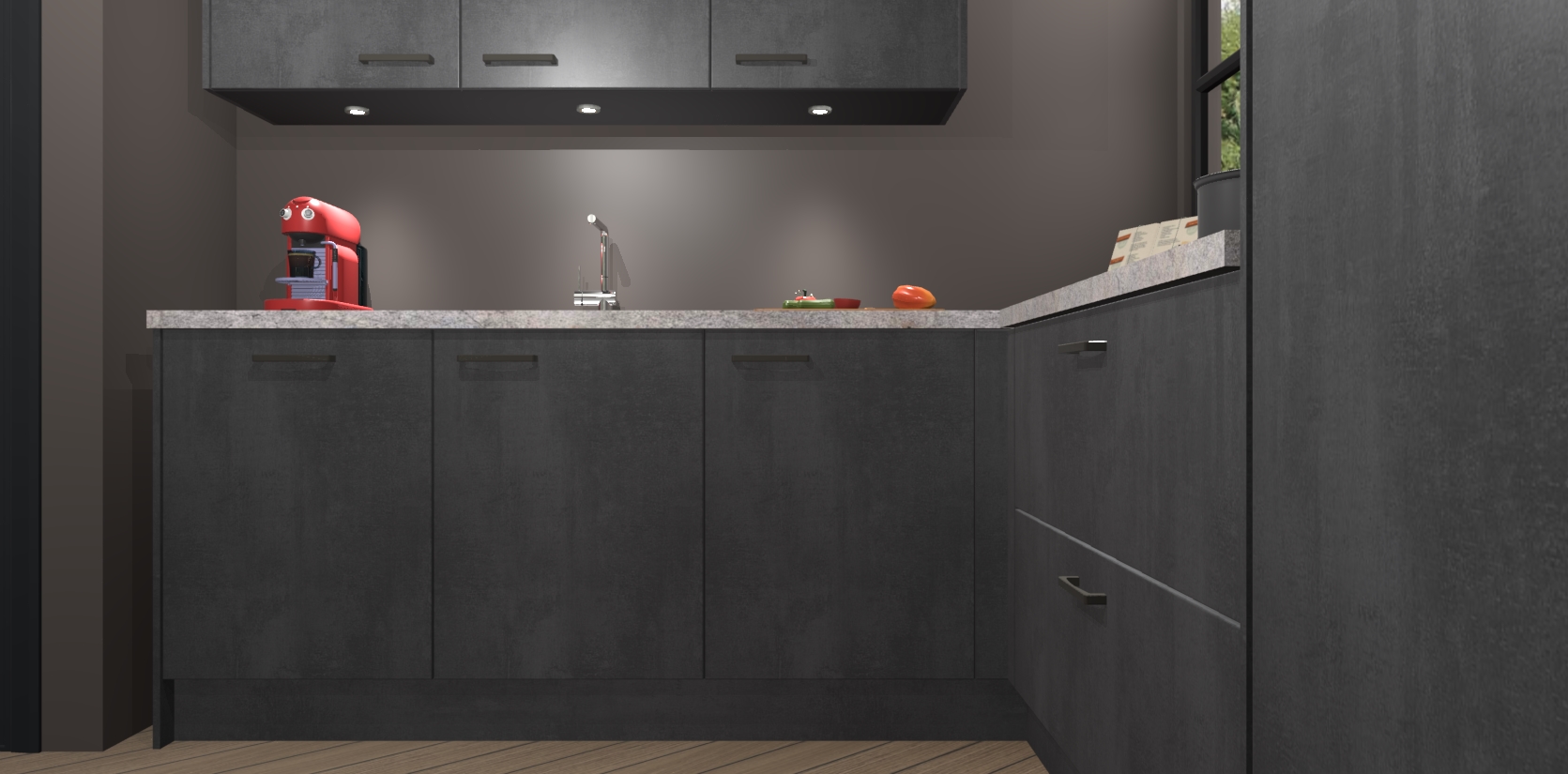 Koken wordt nooit meer hetzelfde met de aanwinst van de Beton Zwarte keuken Johannesburg! In deze moderne keuken ervaring zal u genieten van alle elementen die nieuwe kansen bieden om op een andere manier te koken. Met eeuwigdurende stijl en generieke opslagruimte zal u geen moment vervelendekomen als u in uw keuken bent. De deuren bevatten een comfortabele soft-close functie, waardoor er minder gehannes is bij elk gebruik.