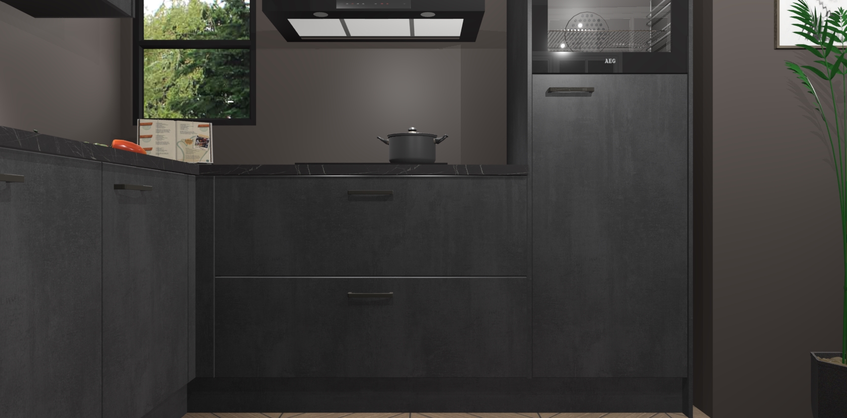 Inclusief plinten, stelpoten en werkblad