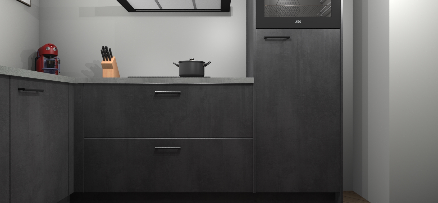 Inclusief plinten, stelpoten en werkblad