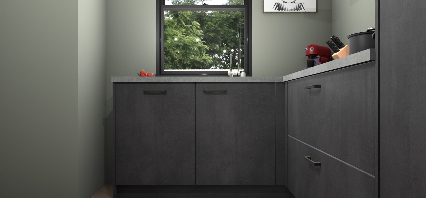 In deze box zijn alle kleuren verzameld van de deuren en werkbladen. Vraag de gratis kleurenbox aan en kijk thuis rustig verder!