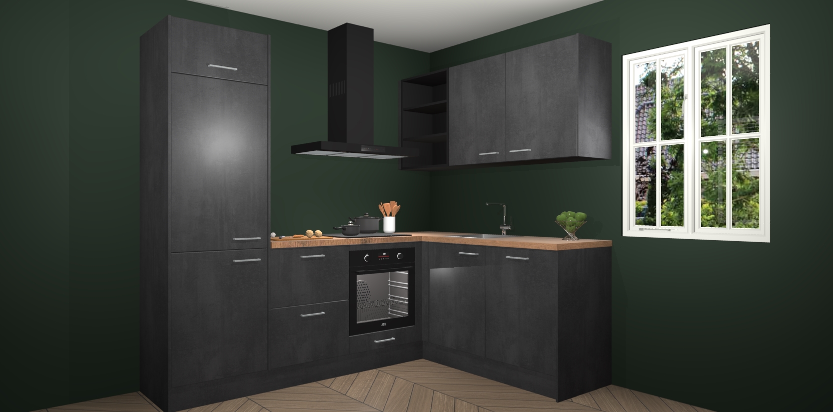 Dit model biedt u voldoende opbergruimte en vijf ingebouwde apparaten: een oven, inductiekookplaat, afzuigkap, vaatwasser en koelkast. Deze apparaten kunnen gemakkelijk worden geüpgrade naar AEG nadat u besteld heeft. De verschillende laden en kastjes bevatten softclose-deuren waardoor ze gezellig dichtvallen met een geruststellend helemaal geruisloos geluid. En dat is nog niet alles! We garanderen ook dat de prijs altijd laag blijft - dus haal nu uw Beton Zwarte keuken Krakau terwijl het kan.