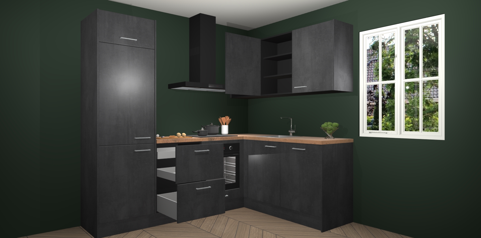 Bestellen was nog nooit zo makkelijk en we leveren met slechts 7 weken; zodra de keuken arriveert staan de kasten voor gemonteerd klaar om er alles aan te doen dat u hem gemakkelijk zelf kunt installeren! Eén ding is zeker: met de Beton Zwarte keuken Krakau slaagt u erin modischer, modernere keukens uit te rusten die tientallen jaren meegaan! Haal snel uw Beton Zwarte keuken Krakau - of u nu net begint of al 'levenservaring' hebt in de keukendroomloopbaan - want dit topmodel van onze collectie wilt u absoluut niet missen.