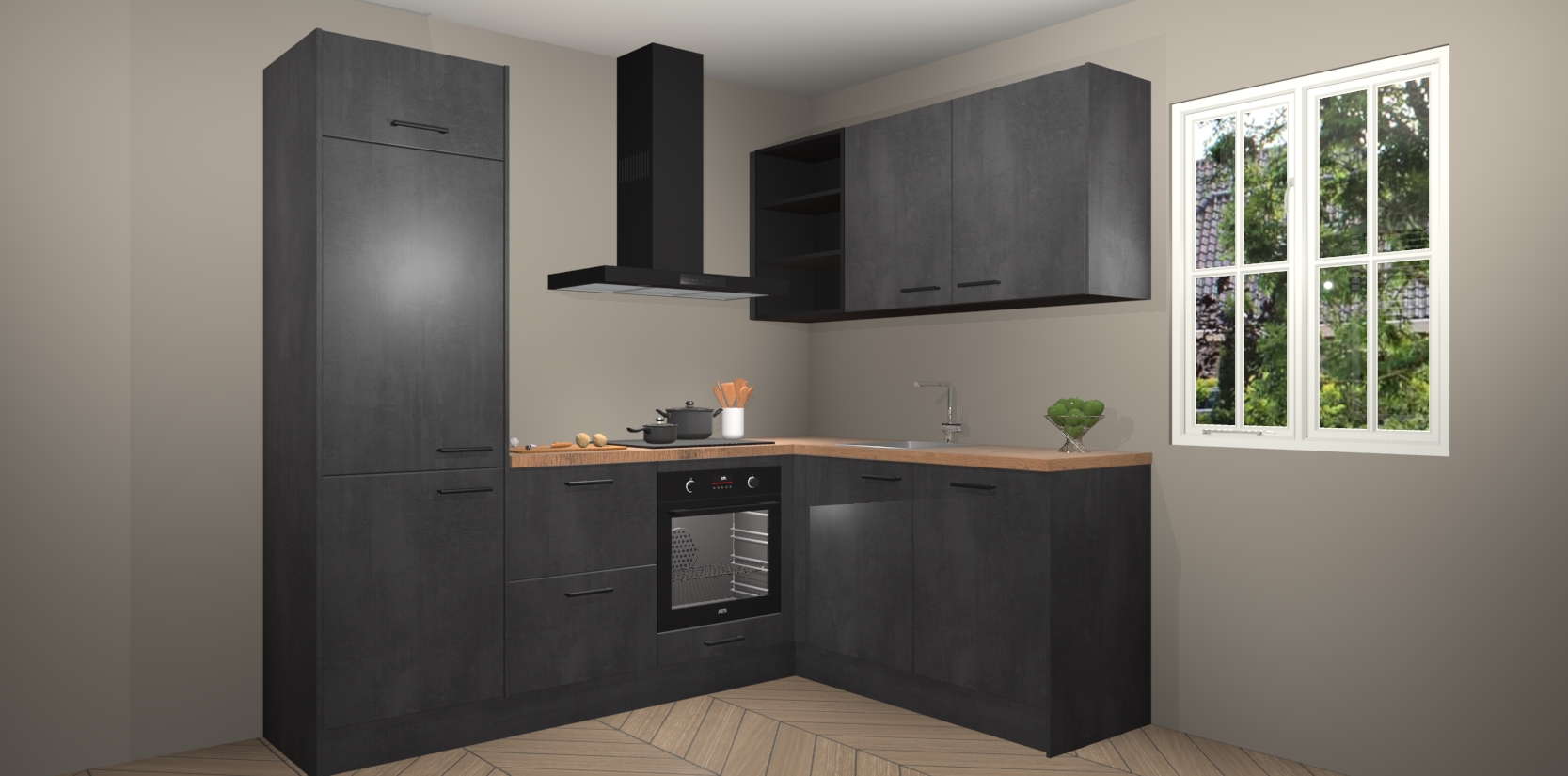 Dit model biedt u voldoende opbergruimte en vijf ingebouwde apparaten: een oven, inductiekookplaat, afzuigkap, vaatwasser en koelkast. Deze apparaten kunnen gemakkelijk worden geüpgrade naar AEG nadat u besteld heeft. De verschillende laden en kastjes bevatten softclose-deuren waardoor ze gezellig dichtvallen met een geruststellend helemaal geruisloos geluid. En dat is nog niet alles! We garanderen ook dat de prijs altijd laag blijft - dus haal nu uw Beton Zwarte keuken Krakau terwijl het kan.