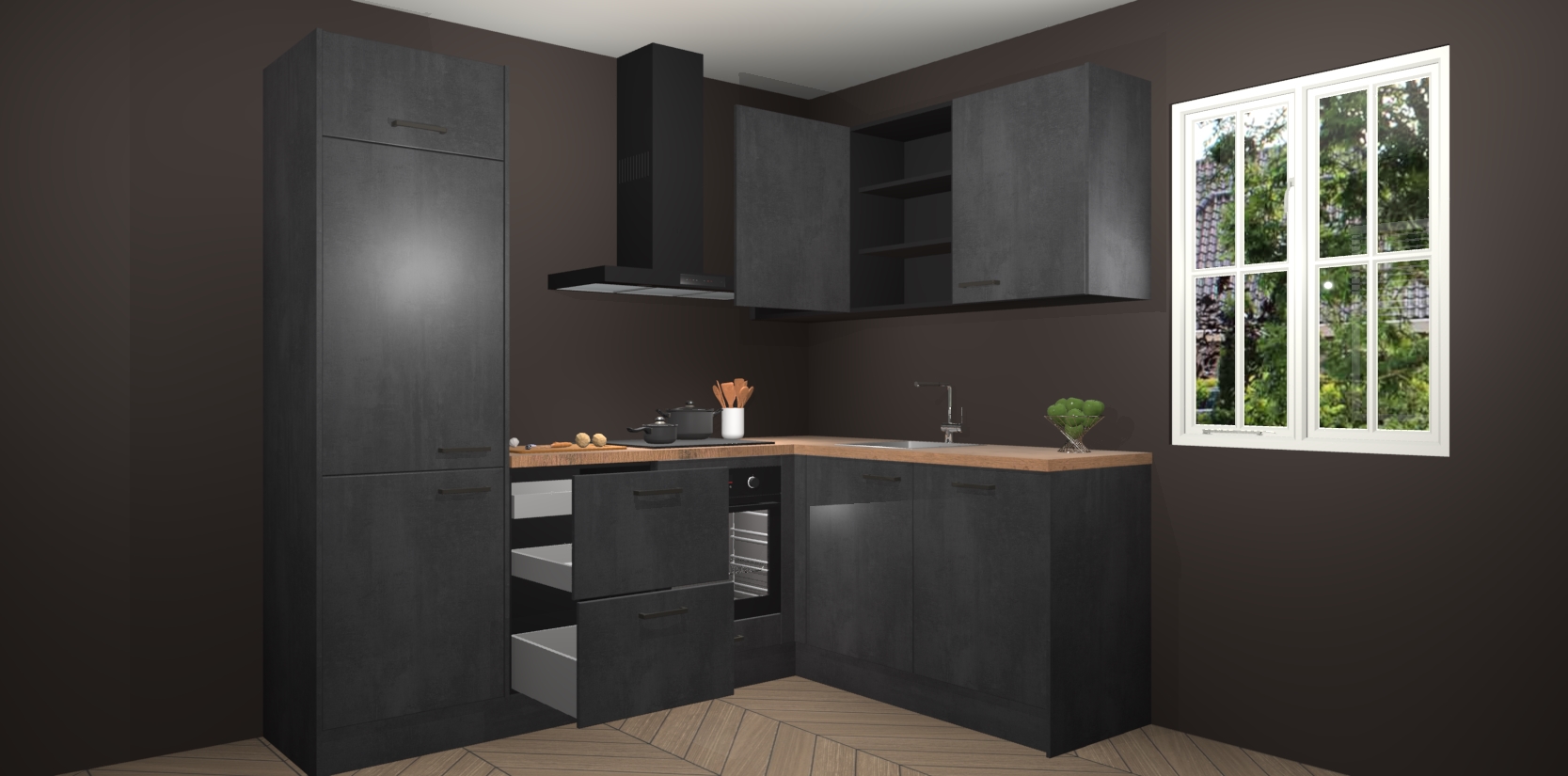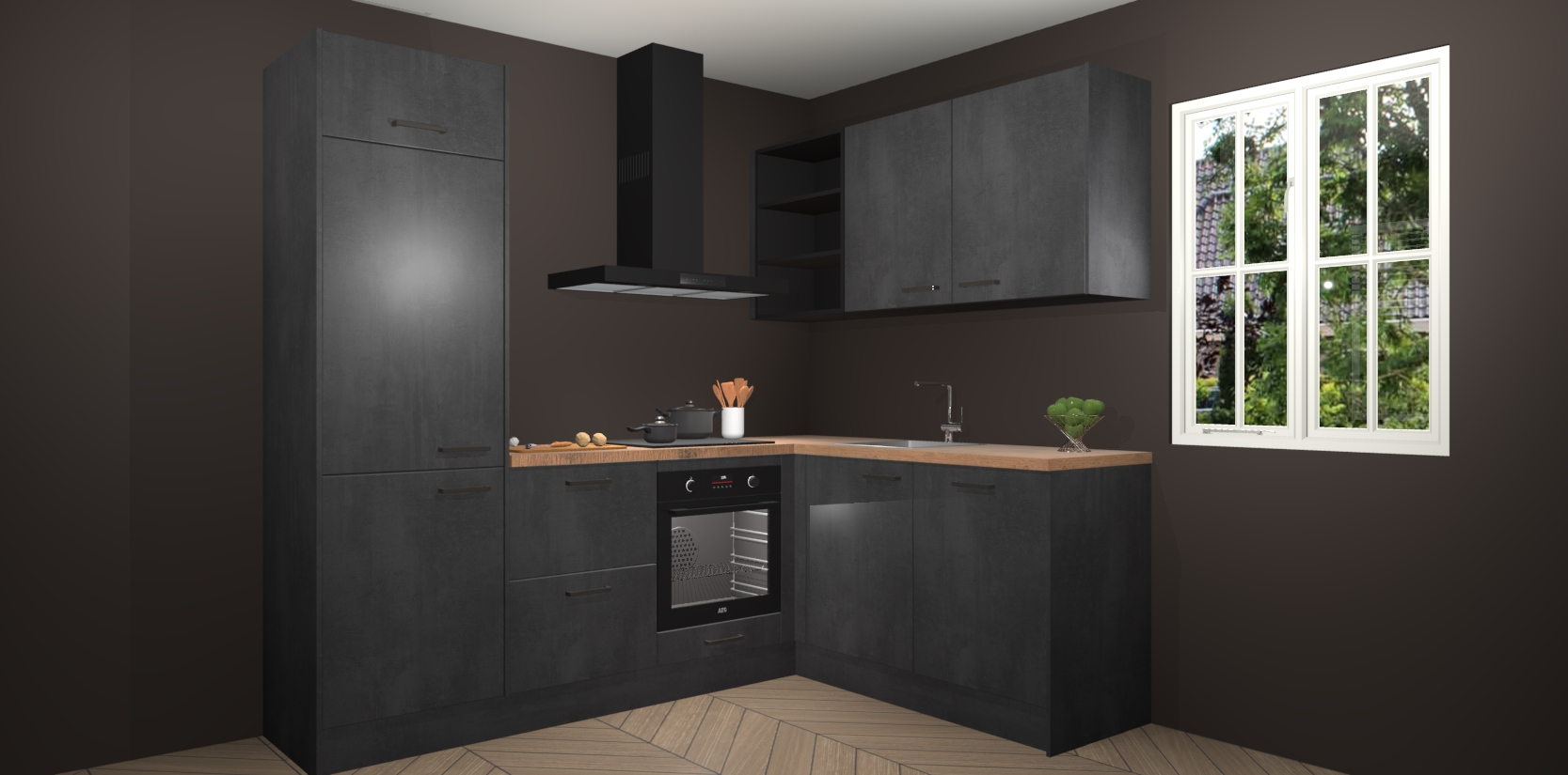Bestellen was nog nooit zo makkelijk en we leveren met slechts 7 weken; zodra de keuken arriveert staan de kasten voor gemonteerd klaar om er alles aan te doen dat u hem gemakkelijk zelf kunt installeren! Eén ding is zeker: met de Beton Zwarte keuken Krakau slaagt u erin modischer, modernere keukens uit te rusten die tientallen jaren meegaan! Haal snel uw Beton Zwarte keuken Krakau - of u nu net begint of al 'levenservaring' hebt in de keukendroomloopbaan - want dit topmodel van onze collectie wilt u absoluut niet missen.