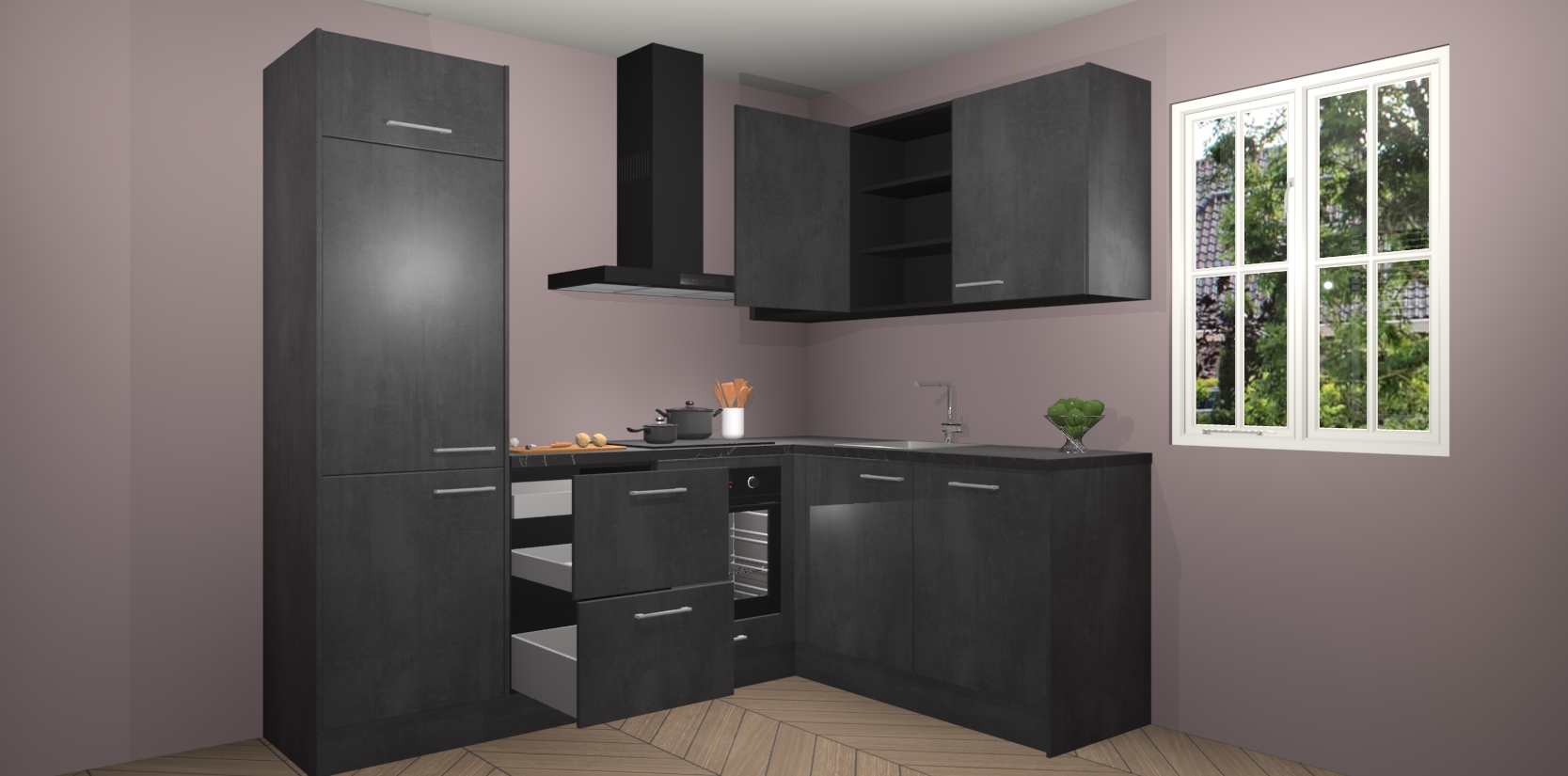 Bestellen was nog nooit zo makkelijk en we leveren met slechts 7 weken; zodra de keuken arriveert staan de kasten voor gemonteerd klaar om er alles aan te doen dat u hem gemakkelijk zelf kunt installeren! Eén ding is zeker: met de Beton Zwarte keuken Krakau slaagt u erin modischer, modernere keukens uit te rusten die tientallen jaren meegaan! Haal snel uw Beton Zwarte keuken Krakau - of u nu net begint of al 'levenservaring' hebt in de keukendroomloopbaan - want dit topmodel van onze collectie wilt u absoluut niet missen.