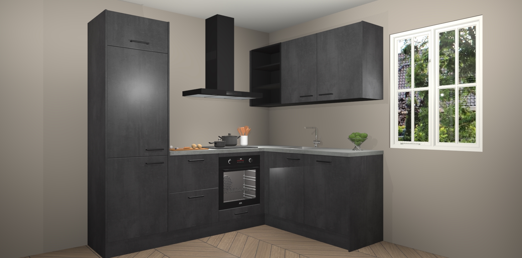 Bestellen was nog nooit zo makkelijk en we leveren met slechts 7 weken; zodra de keuken arriveert staan de kasten voor gemonteerd klaar om er alles aan te doen dat u hem gemakkelijk zelf kunt installeren! Eén ding is zeker: met de Beton Zwarte keuken Krakau slaagt u erin modischer, modernere keukens uit te rusten die tientallen jaren meegaan! Haal snel uw Beton Zwarte keuken Krakau - of u nu net begint of al 'levenservaring' hebt in de keukendroomloopbaan - want dit topmodel van onze collectie wilt u absoluut niet missen.