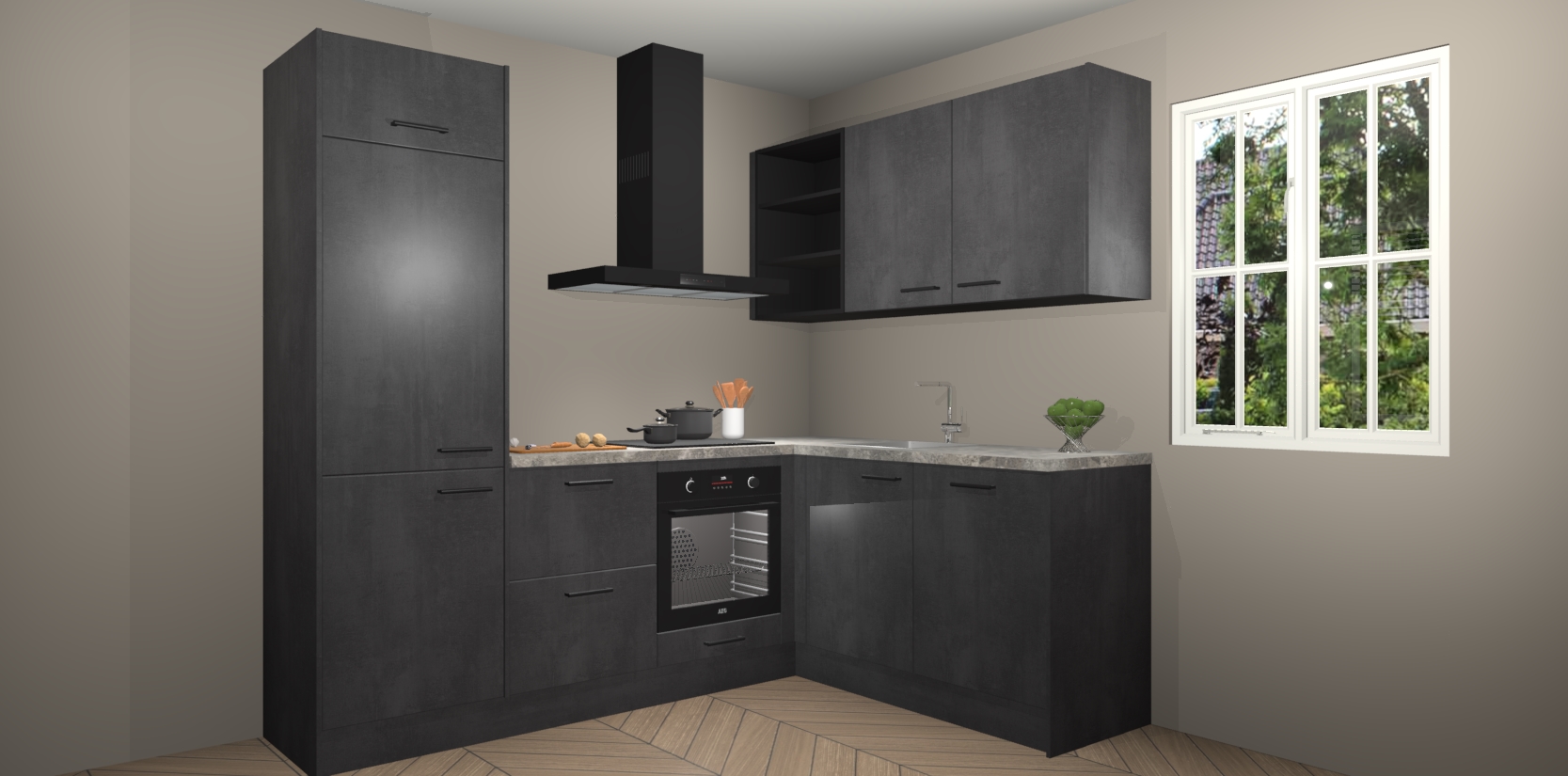 Dit model biedt u voldoende opbergruimte en vijf ingebouwde apparaten: een oven, inductiekookplaat, afzuigkap, vaatwasser en koelkast. Deze apparaten kunnen gemakkelijk worden geüpgrade naar AEG nadat u besteld heeft. De verschillende laden en kastjes bevatten softclose-deuren waardoor ze gezellig dichtvallen met een geruststellend helemaal geruisloos geluid. En dat is nog niet alles! We garanderen ook dat de prijs altijd laag blijft - dus haal nu uw Beton Zwarte keuken Krakau terwijl het kan.