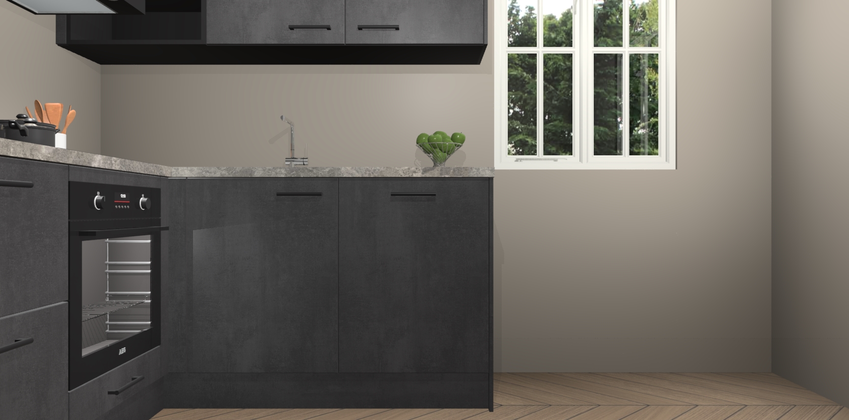 Bestellen was nog nooit zo makkelijk en we leveren met slechts 7 weken; zodra de keuken arriveert staan de kasten voor gemonteerd klaar om er alles aan te doen dat u hem gemakkelijk zelf kunt installeren! Eén ding is zeker: met de Beton Zwarte keuken Krakau slaagt u erin modischer, modernere keukens uit te rusten die tientallen jaren meegaan! Haal snel uw Beton Zwarte keuken Krakau - of u nu net begint of al 'levenservaring' hebt in de keukendroomloopbaan - want dit topmodel van onze collectie wilt u absoluut niet missen.