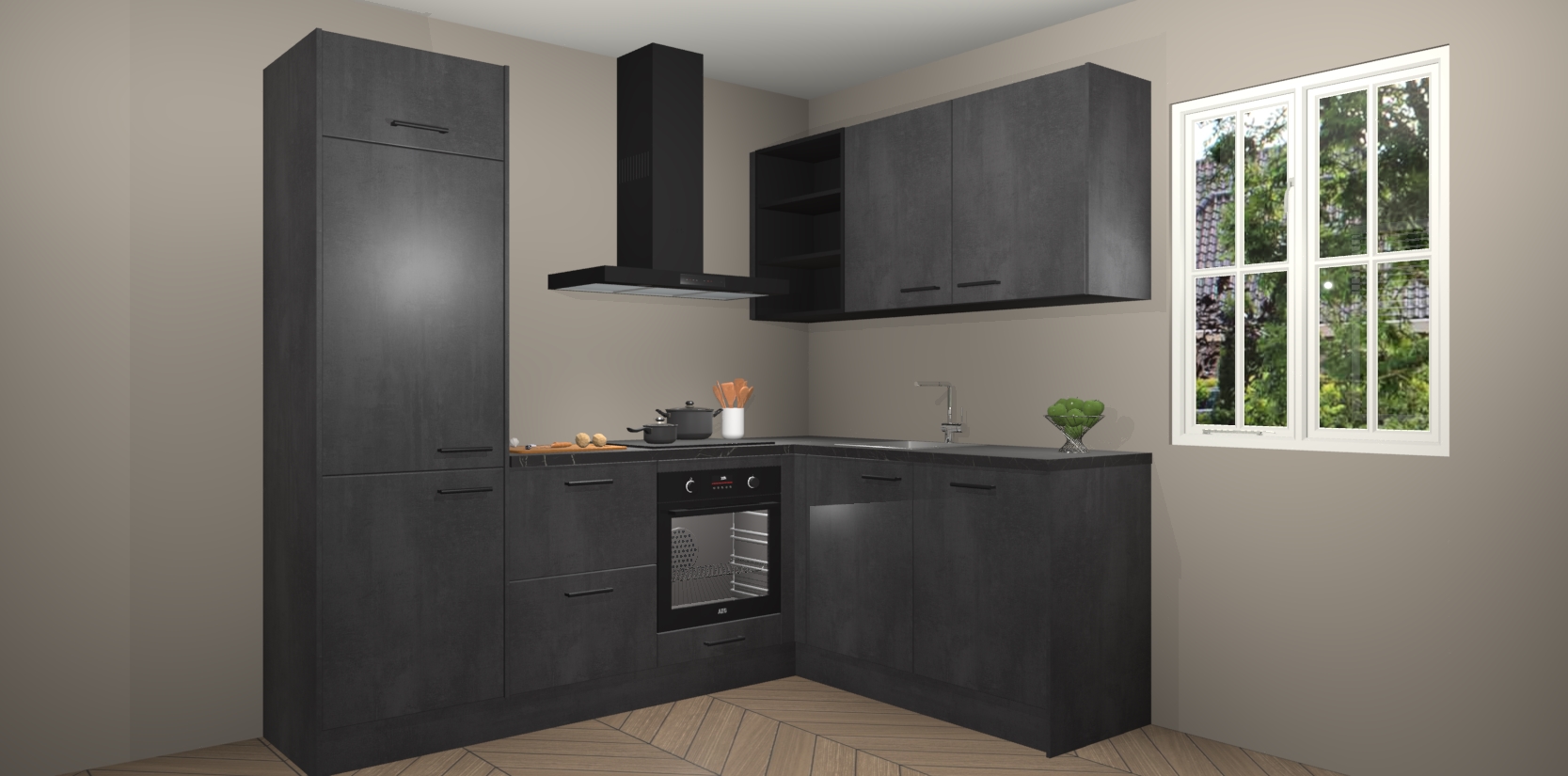 Bestellen was nog nooit zo makkelijk en we leveren met slechts 7 weken; zodra de keuken arriveert staan de kasten voor gemonteerd klaar om er alles aan te doen dat u hem gemakkelijk zelf kunt installeren! Eén ding is zeker: met de Beton Zwarte keuken Krakau slaagt u erin modischer, modernere keukens uit te rusten die tientallen jaren meegaan! Haal snel uw Beton Zwarte keuken Krakau - of u nu net begint of al 'levenservaring' hebt in de keukendroomloopbaan - want dit topmodel van onze collectie wilt u absoluut niet missen.