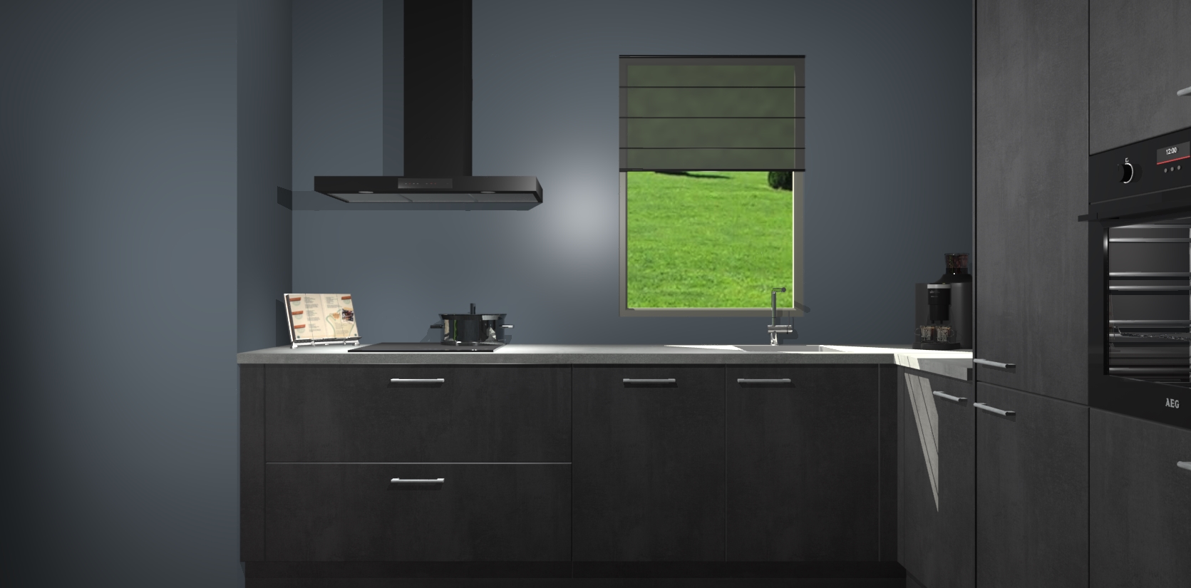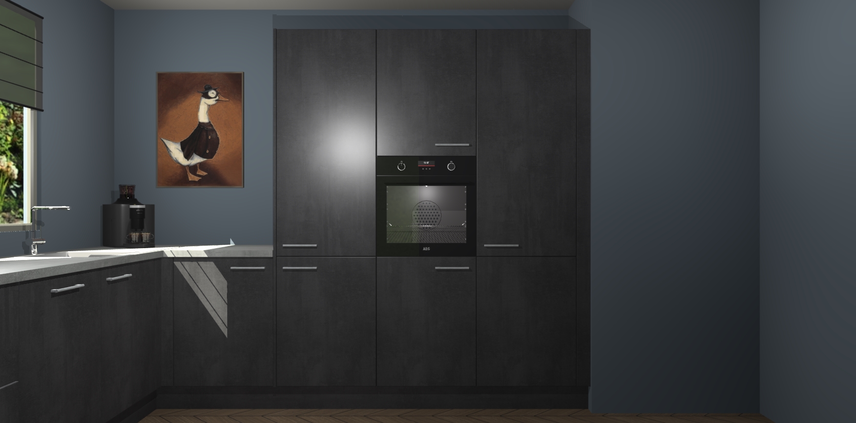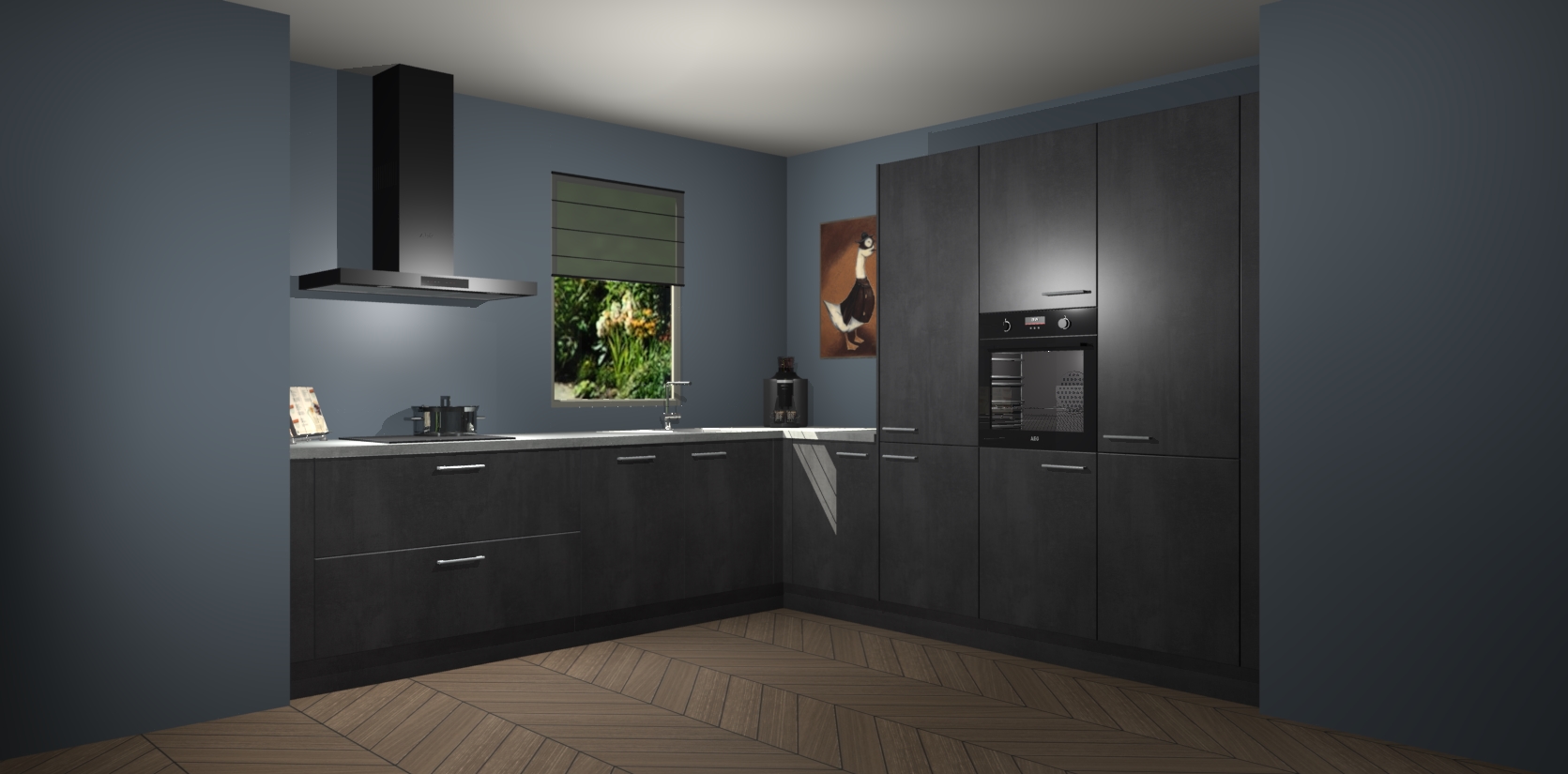 Welkom bij de Beton Zwarte keuken Laos. Deze prachtige keuken zal de komende jaren het middelpunt van de belangstelling in uw huis zijn. Uitgerust met vijf inbouwapparaten komt u nooit kookgereedschap tekort. Bovendien geeft de warme houtlook elke ruimte een uitnodigende en tijdloze uitstraling.